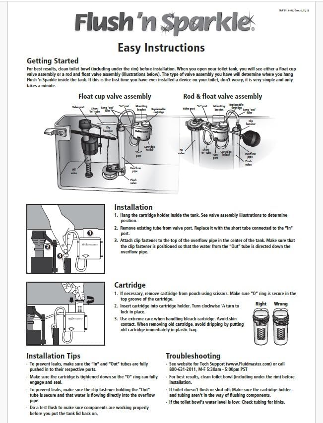 Fluidmaster 8302P8 Flush 'n Sparkle Automatic Toilet Bowl Cleaning System Bleach Replacement Cartridge Refills, 2-Pack