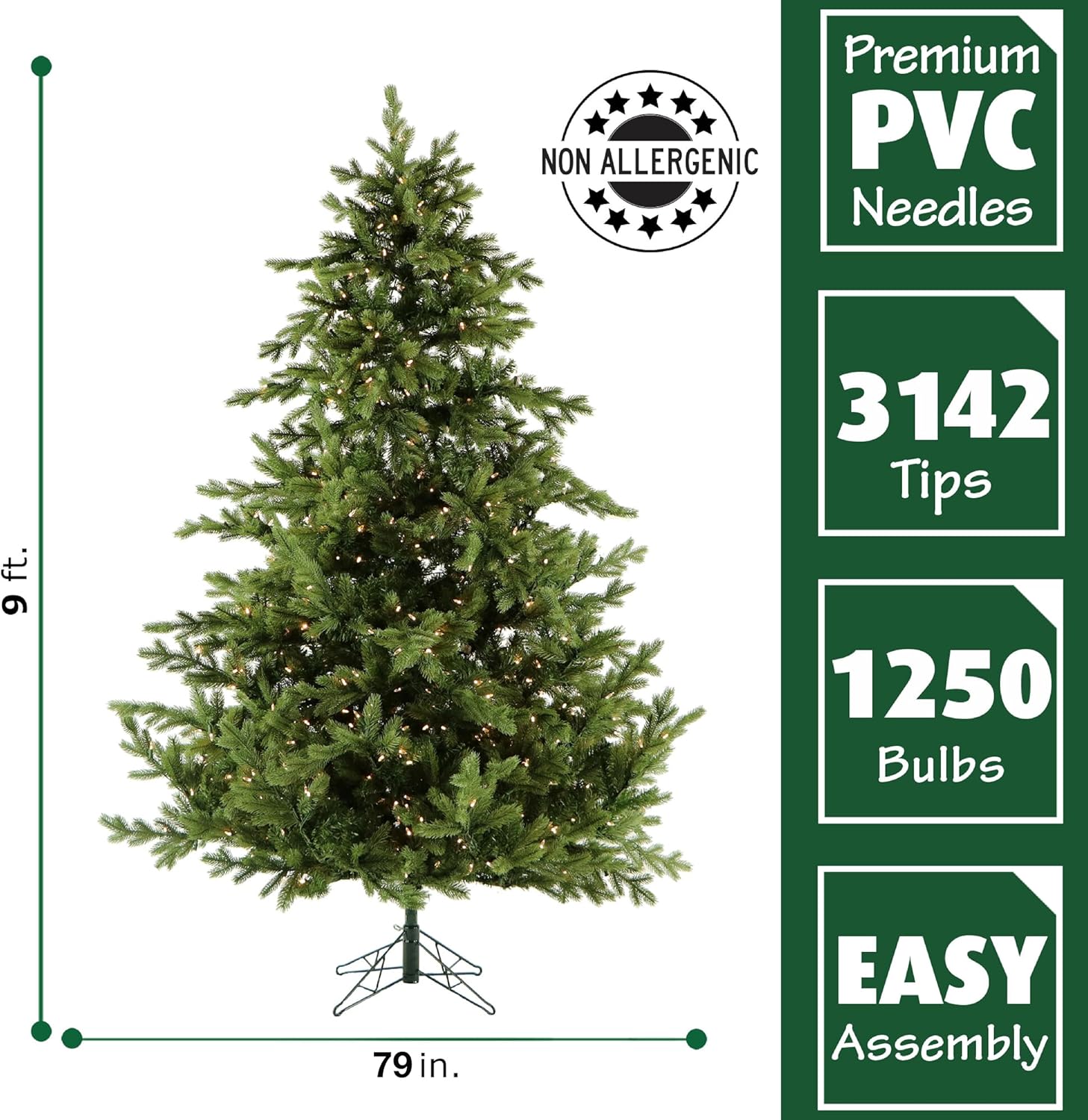 - Prelit: Prestrung with 1250 warm white LED lights to bring a festive glow to your home