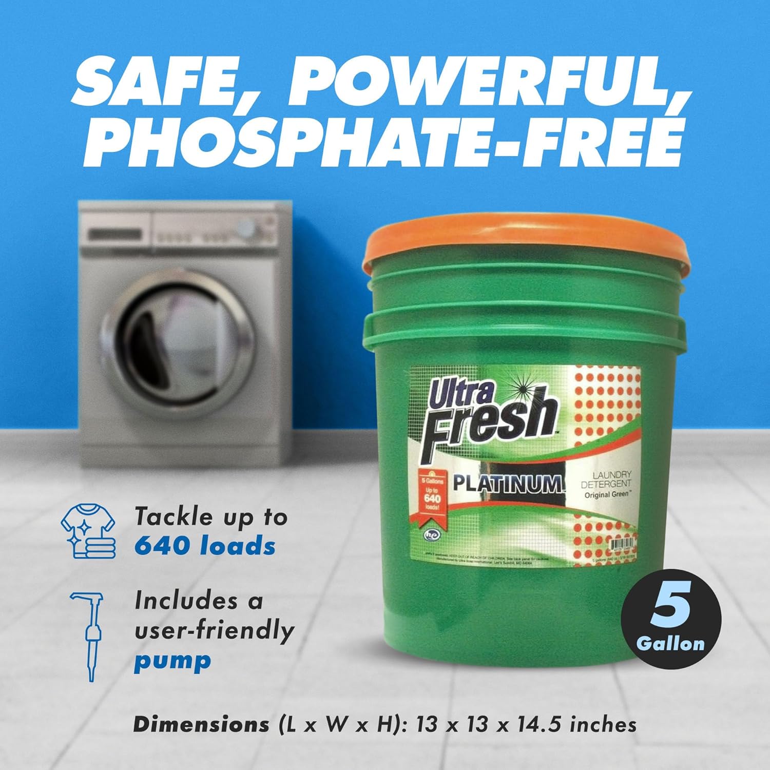 Ultra Fresh 5 Gallon Liquid Laundry Detergent Washing Soap for All Machine Types, 3X Platinum, Up to 640 Loads, Original Green