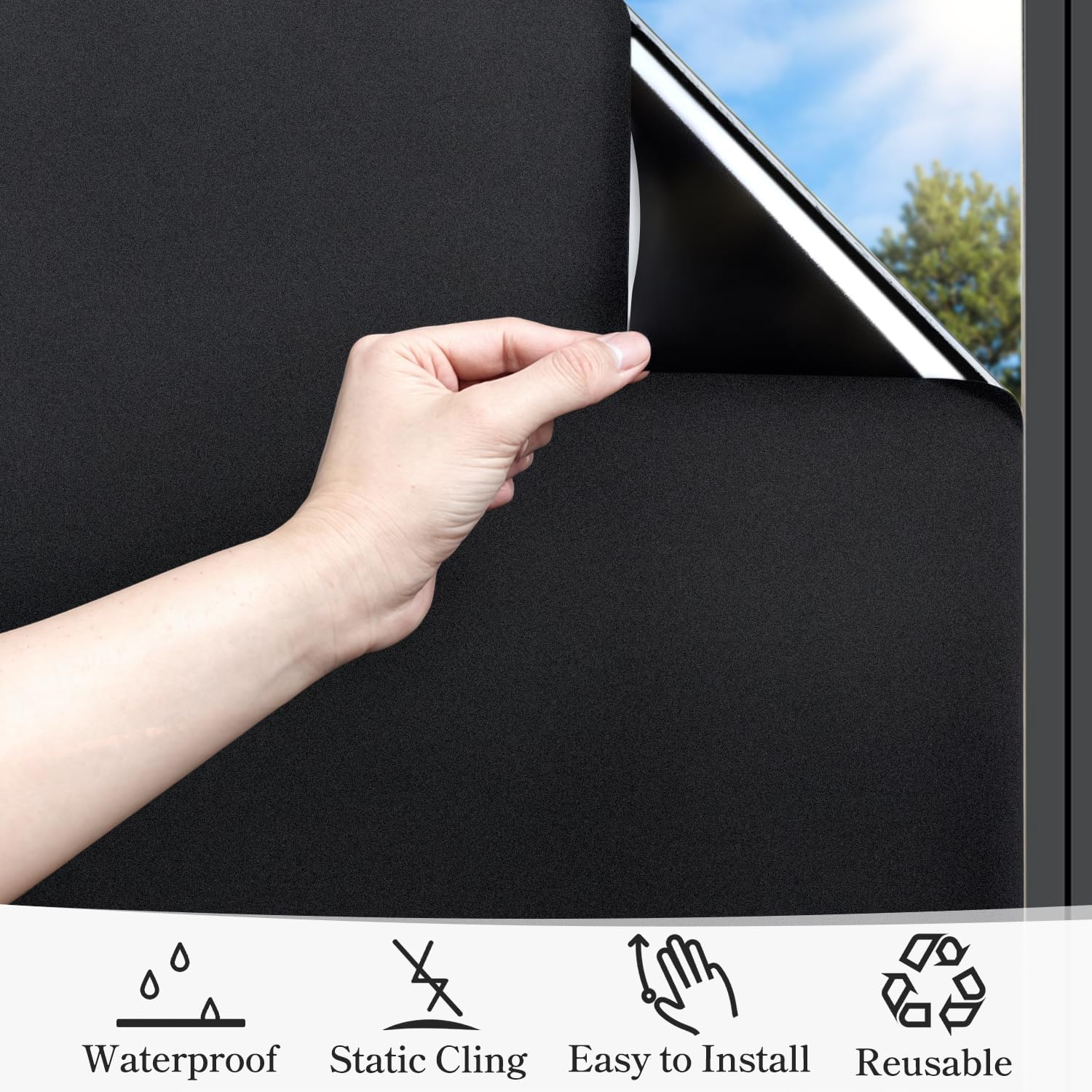 DUOFIRE Blackout Window Film Completely Light Blocking Privacy Window Film Room Darkening Frosted Tint Film for Day Sleep, Non Adhesive Static Cling Window Film DT-C009 (17.4 x 78.7 Inch)