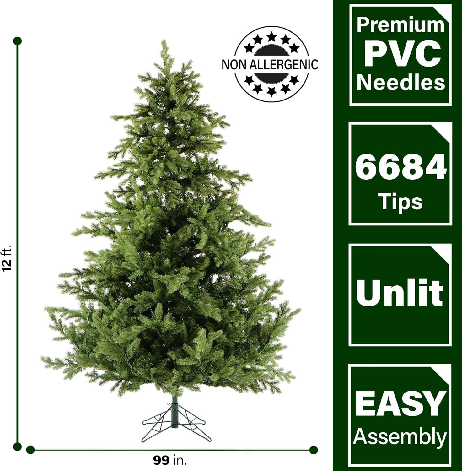 - 12-foot Tall: Standing 12-foot tall with a 99-inch diameter, this beautiful tree will make a statement in grand entryways with cathedral ceilings, making this tree the focal point of your home