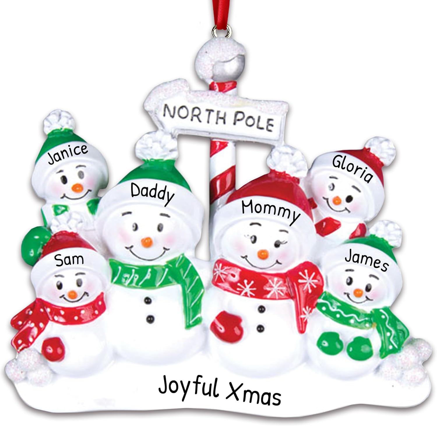 - 🎁 Celebrate Your Family of 6: Mark a joyful milestone with a personalized family of 6 Christmas ornament 2025. Whether it’s your first year as six or part of a cherished tradition, this keepsake honors your growing bond and tells your story with warmth, love, and festive cheer. Celebrate winter magic with this cheerful Christmas decoration featuring a snowman family of six design all bundled in red and green winter accessories. They stand proudly beneath a North Pole sign ornament, bringing whimsical charm to your tree. With its snowy white holiday scene, this piece adds heartwarming joy to your seasonal décor.