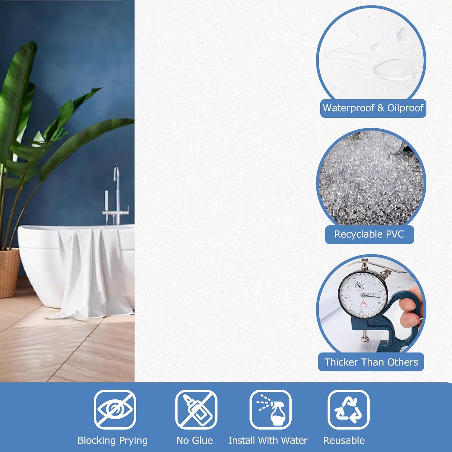 - ECONOMICAL & WIDE APPLICATION: No more heavy and troublesome curtains and blinds, simple decorative window film makes life more convenient and better. Suitable for all smooth and clean glass surfaces in office, bedroom, bathroom, living room, kitchen, balconie, cabinet, glass door, hotel, etc. Double-layered glass, frosted glass and other treated uneven glass is not applicable for window frosting film.