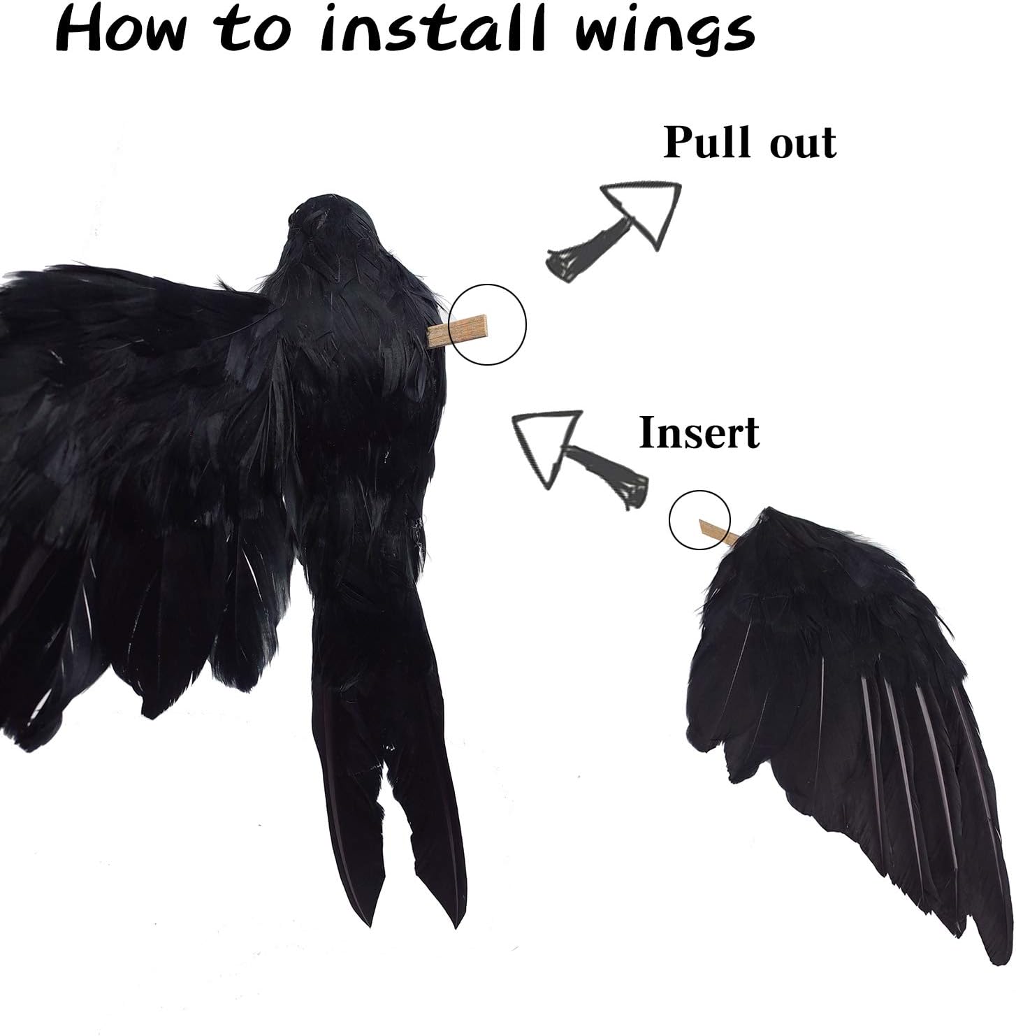 2-Pack Realistic Crows Lifesize Extra Large Handmade Black Feathered Crow for Halloween Decorations Birds, L (13 inch+12 inch)