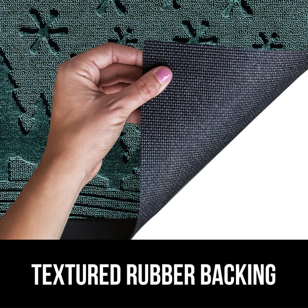 GORILLA GRIP 100% Waterproof All-Season WeatherMax Doormat 35x23, US Designed Natural Rubber, Stain and Fade Resistant, Low Profile Indoor Outdoor Door Mats, Easy Clean Patio Mat, Green Snowscape