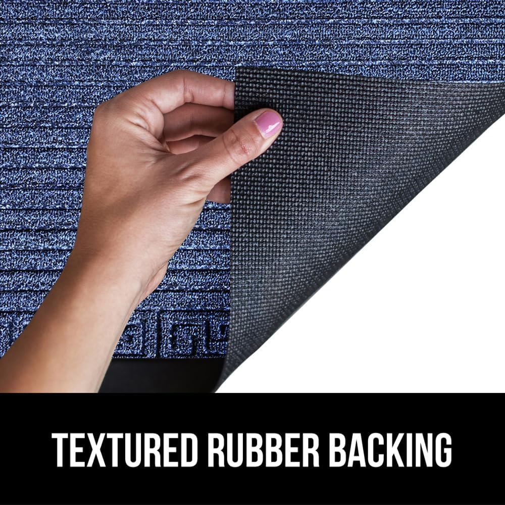 GORILLA GRIP 100% Waterproof All-Season WeatherMax Doormat 35x23, US Designed Natural Rubber, Stain and Fade Resistant, Low Profile Indoor Outdoor Door Mats, Easy Clean Patio Mat, Navy Greek Keys