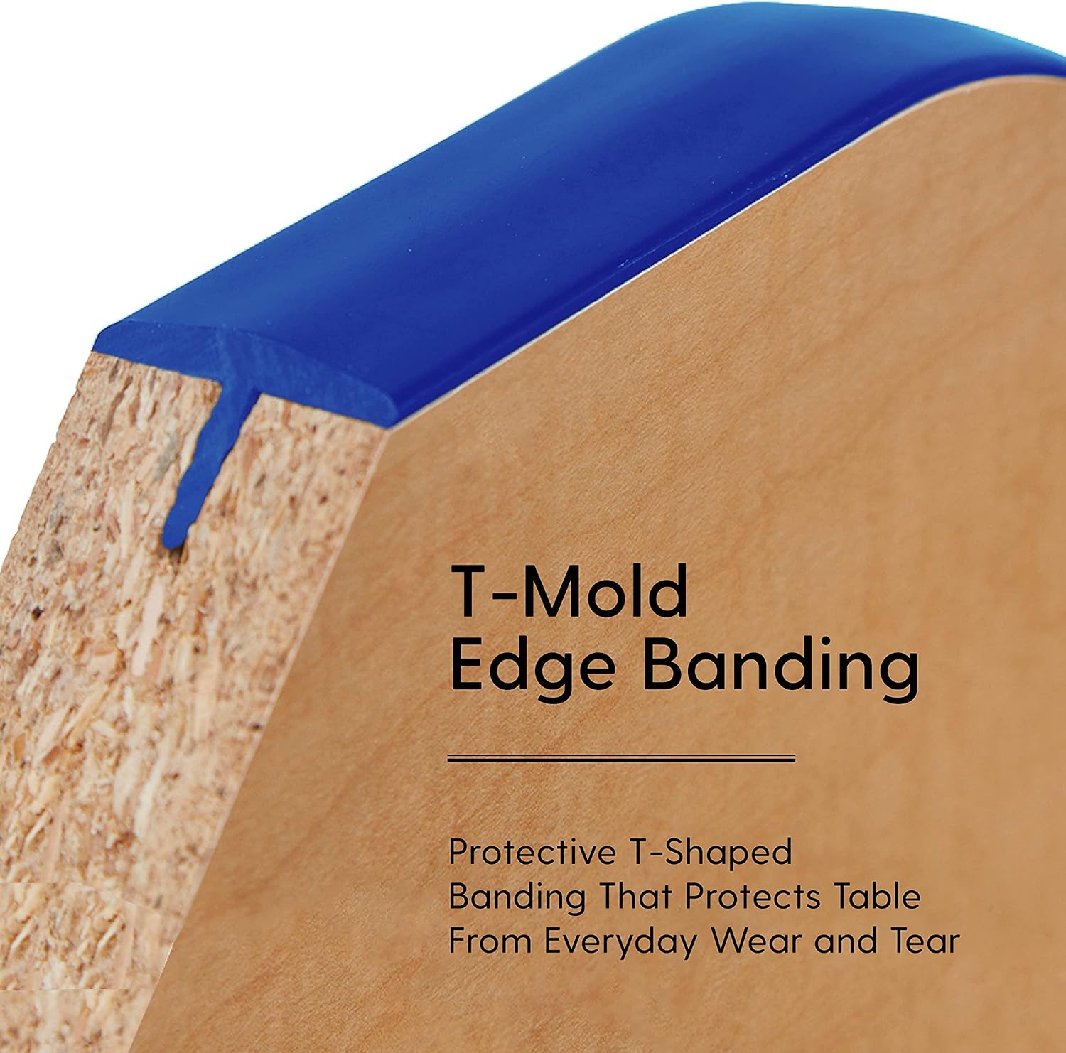 FDP Rectangle Activity School and Classroom Kids Table (30 x 72 inch), Chunky Toddler Leg, Adjustable Height 15-24 inches - Maple Top and Blue Edge