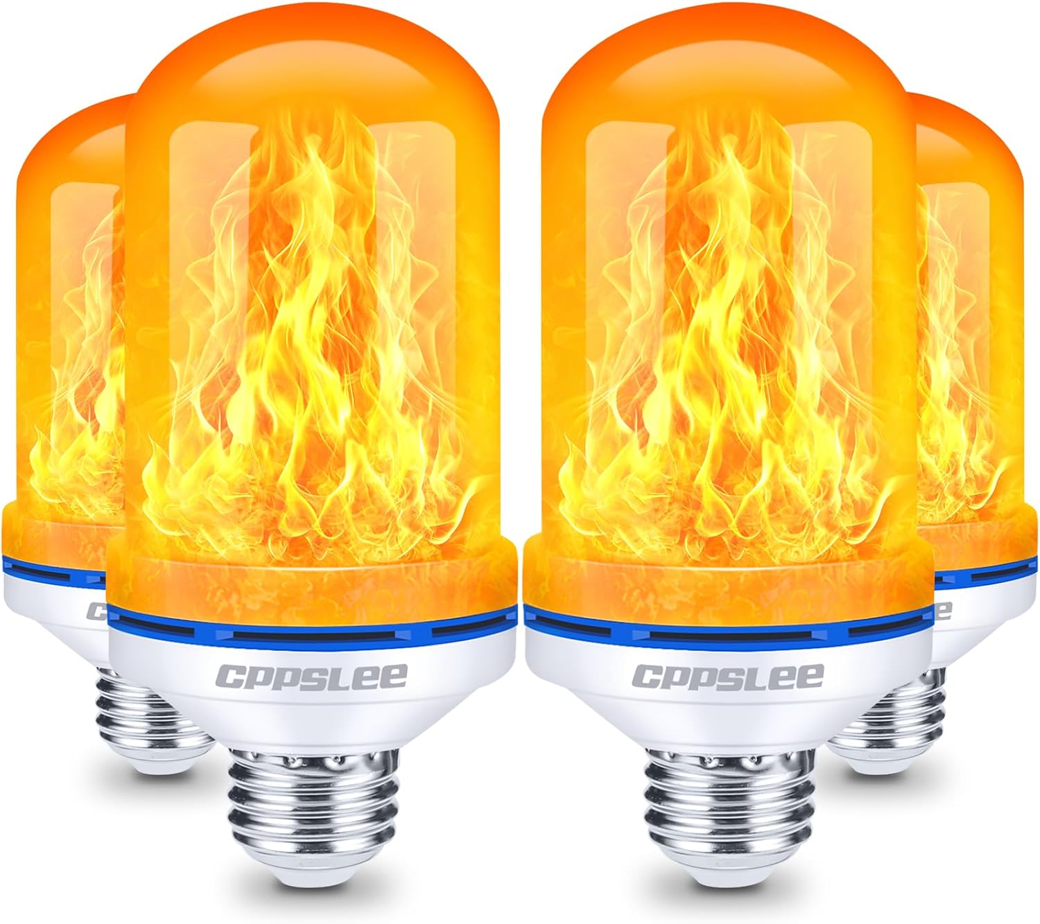 CPPSLEE Upgraded LED Flame Light Bulbs, 4 Modes Flickering Light Bulbs, E26 Base Fire Flame Bulb for Halloween Decorations Outdoor, Christmas Lights Patio Indoor Home Decor (Yellow, 4 Pack)