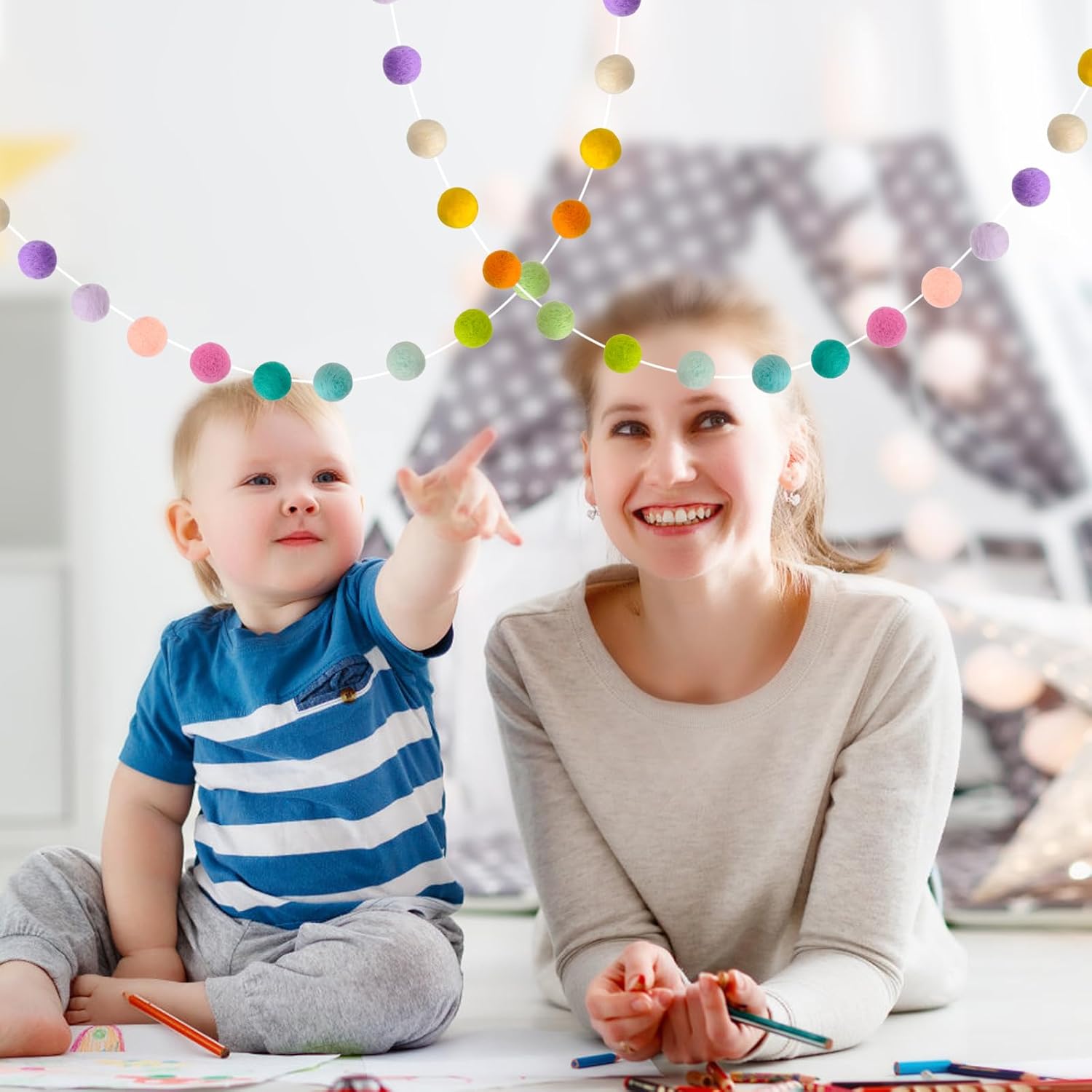 Felt Ball Garland Misscrafts 9.8 Feet 100% Wool Roving Pom Pom Garland 20mm Colorful for Baby Shower Grand Opening Party Festivals Room Decorations