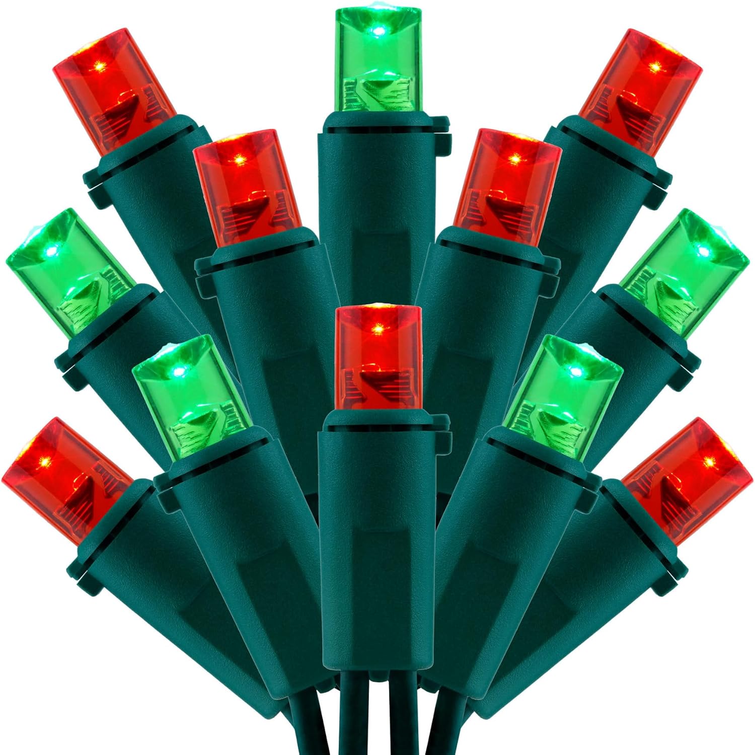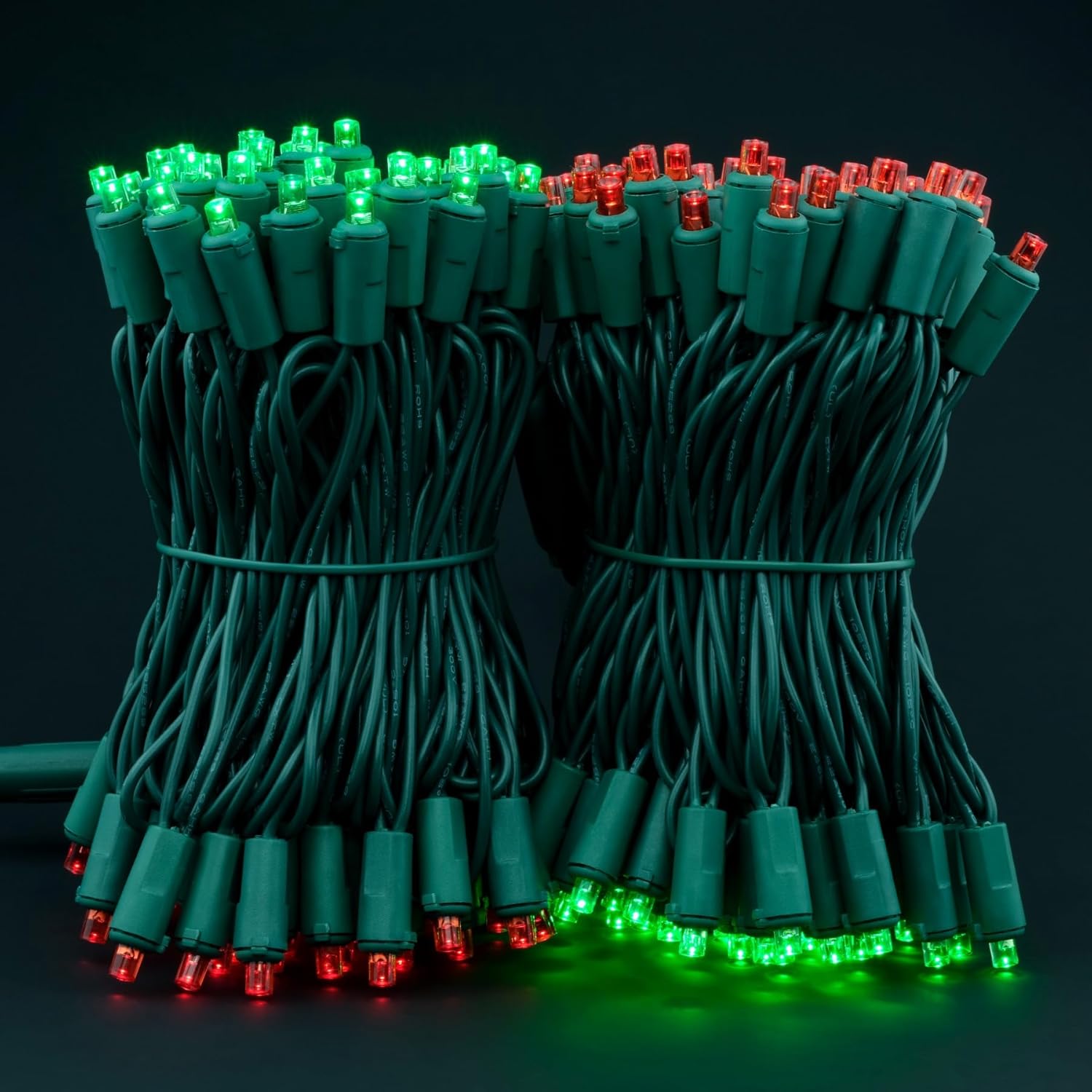 - Red-Green Interval โ Featuring 200 red & green 5mm LED bulbs, with 4-inch spacing, the red and green lights are arranged in intervals between each other. Red and green constitute the main colors of Christmas, and they are Christmas lights that will never go out of style. The wide angle bulbs feature multi-angle light source technology, providing a wide and even distribution of light. The independent light heads allow the light to diverge at multiple angles, ensuring that no corner of your Christ
