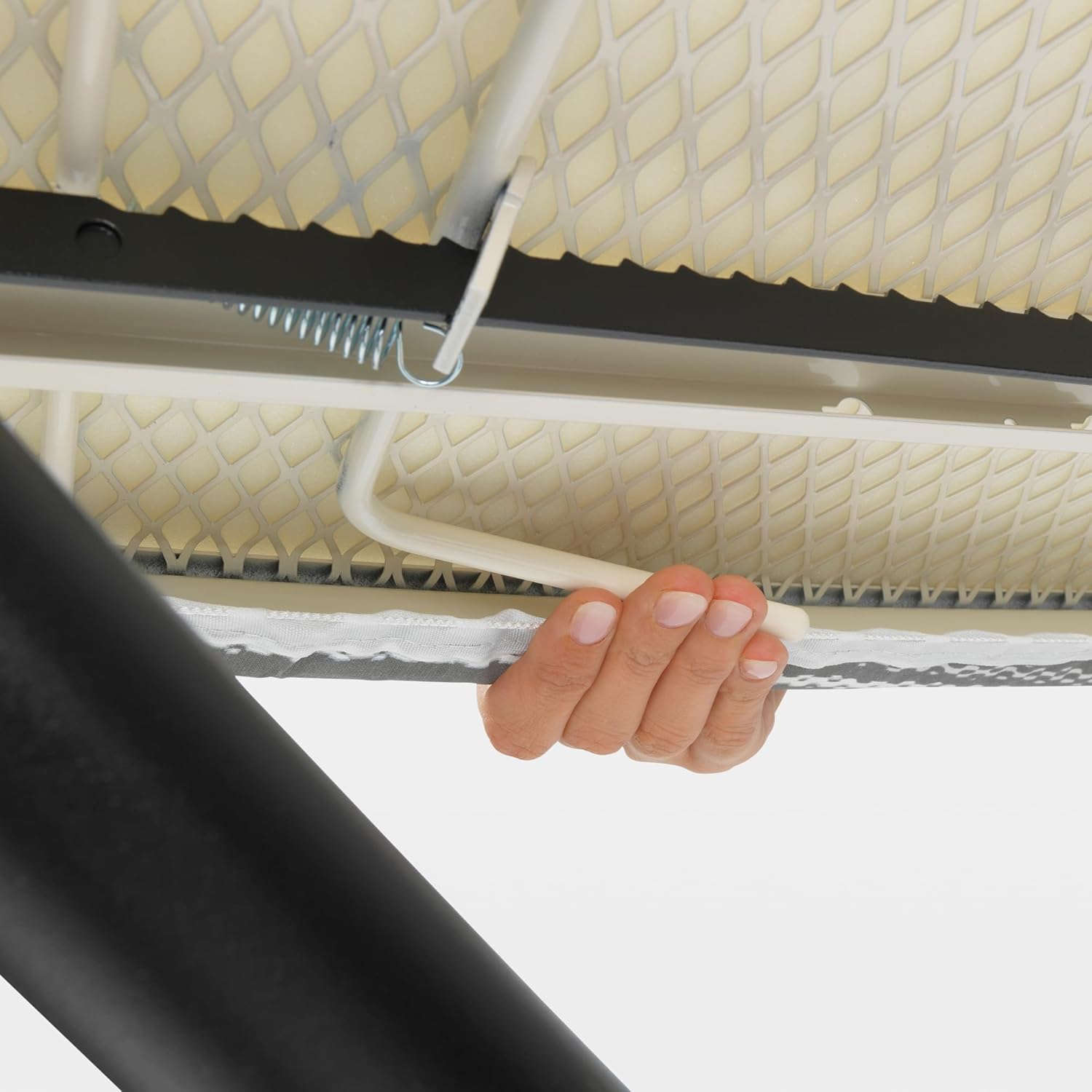 Brabantia Size D Ironing Board (53x18 in) Heat Resistant Parking Zone, Silver Frame, Non-Slip Feet, Suitable for Sit Down Ironing (Spring Bubbles)