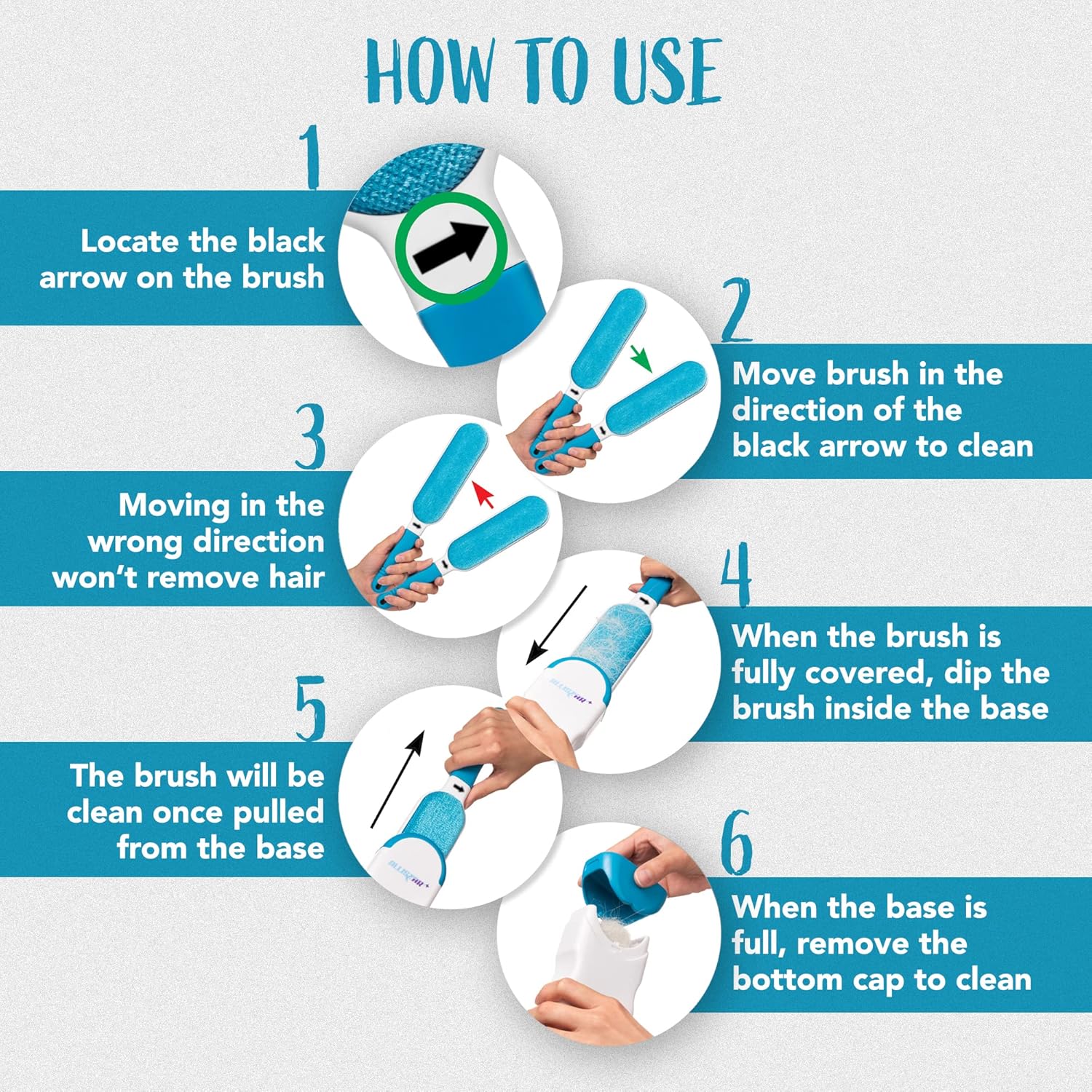 - SIMPLE TO USE - Effortlessly remove pet hair and lint from on a variety of surfaces including clothing, laundry, upholstered fabric, bedding, lamp shades, car seats, furniture and more. Follow the arrows on the brush to instantly remove fur, dust, lint, and hair.