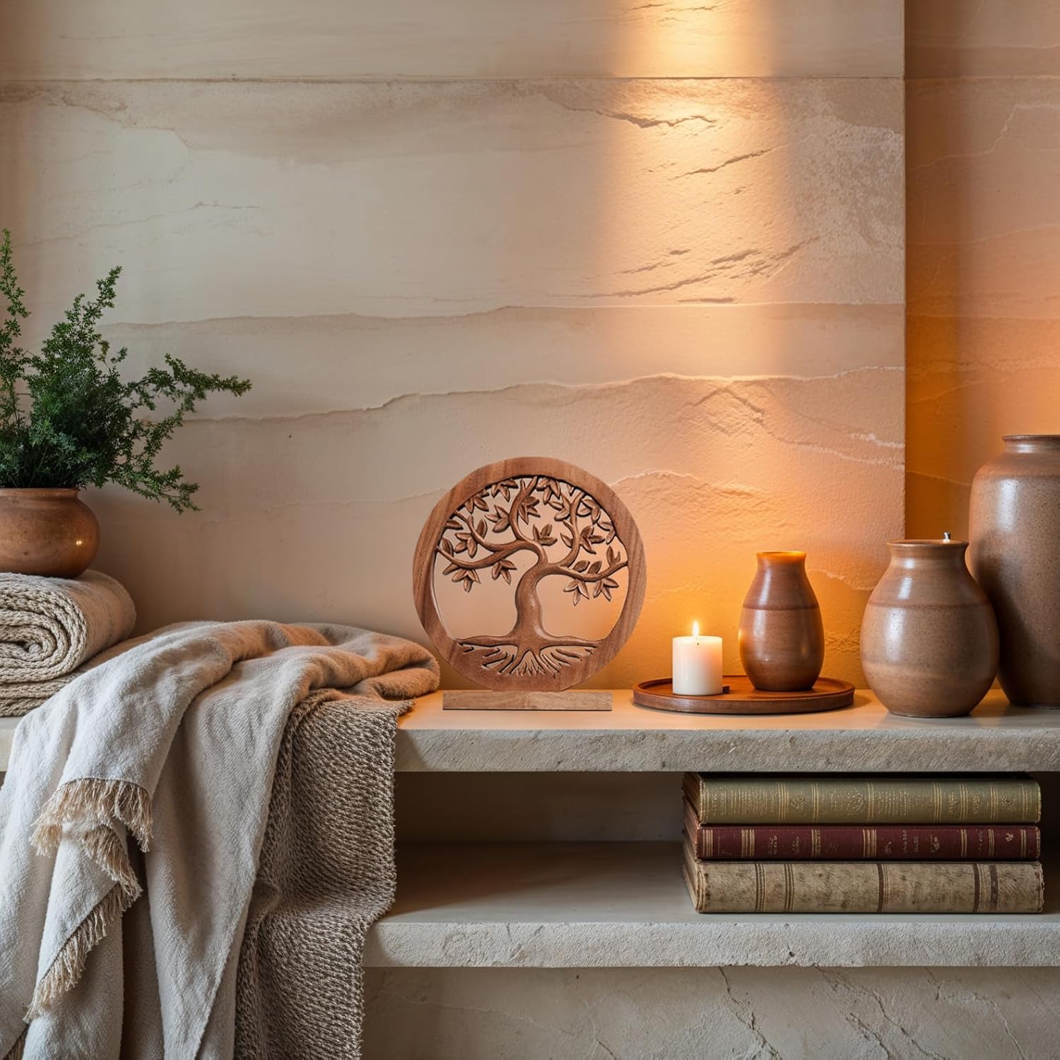 Decozen Solid Wood Tree of Life Sculpture - Home Decor, Living Room, Boho, Shelf, Coffee Table, Centerpiece Table Decorations, Mantle, Dining Table Centerpiece, Bathroom Shelf, Entryway, Farmhouse