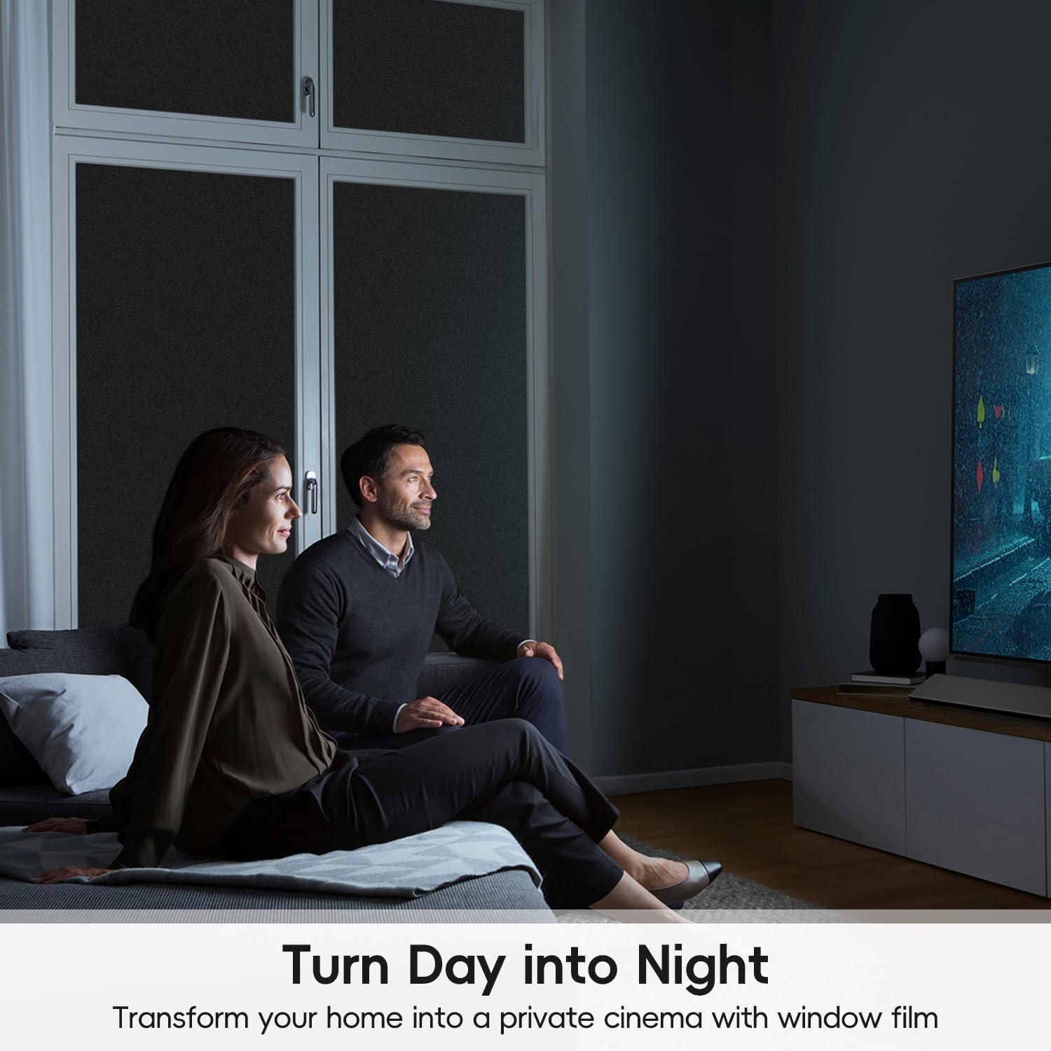 - Top Privacy Protection: Blackout Level: 5 Star. Window privacy film provides complete light blackout, making it impossible to peek inside or outside. This blackout window film provides you with two-way top-level privacy protection and is suitable for various occasions such as bedrooms, video rooms, offices, etc. to create private, quiet and dark spaces.