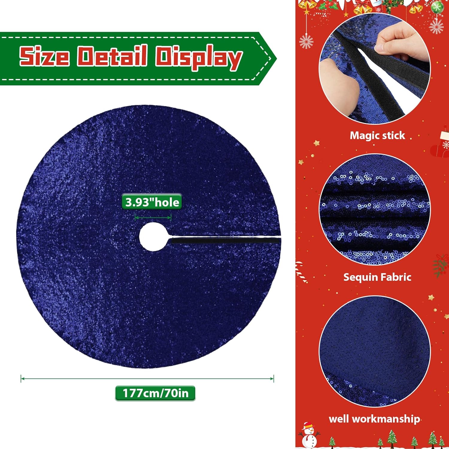 Eternal Beauty Christmas Tree Skirt, 70 Inch Navy Blue Sequin Tree Skirt Small Xmas Tree Skirt for Christmas Tree Decorations