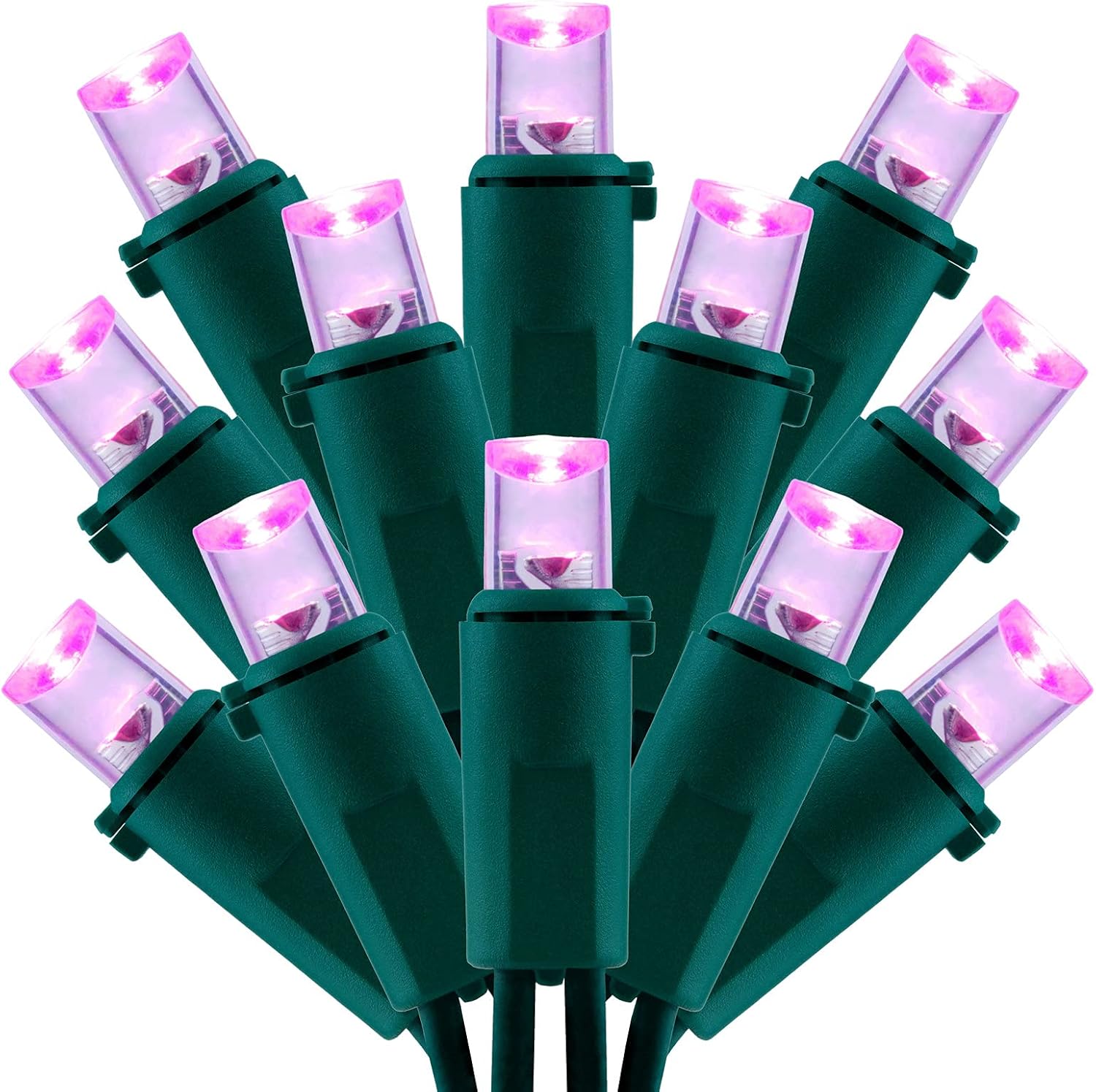 200 Count Pink Wide Angle LED Christmas Lights, 66 ft Green Wire UL Certified Commercial Grade 5mm Holiday String Light Set (Pink)