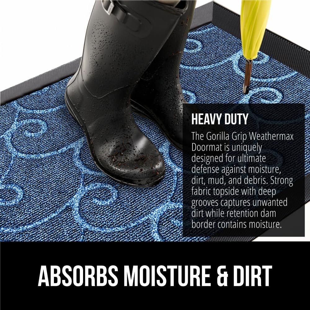 - THE ORIGINAL WEATHERMAX ALL SEASON DOORMAT: Gorilla Grip's Original WeatherMax doormat is built tough with a heavy duty, yet soft and flexible construction; deep grooves, beveled rubber border and retention dam help capture dirt, debris and moisture