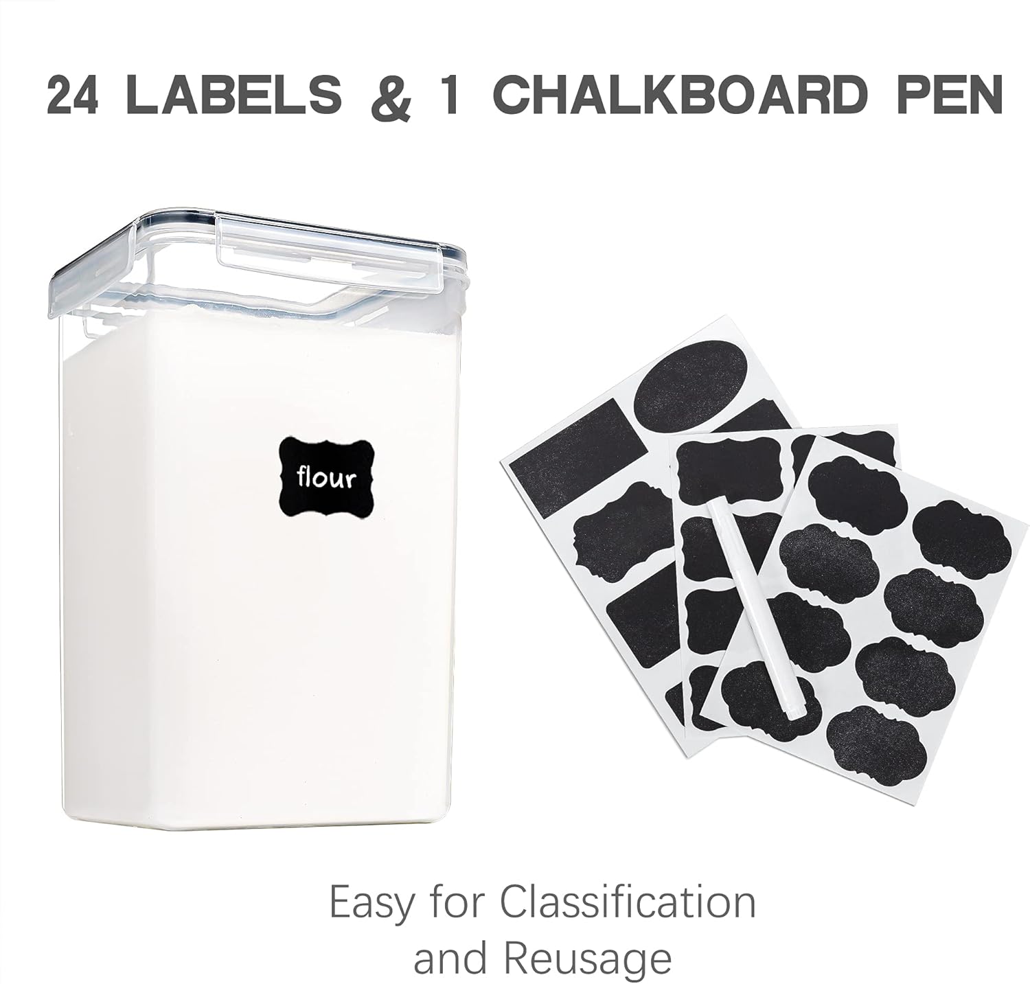 - Suitable Storage Size ---- Includes 2pcs 6.5L extra-large pantry storage containers, especially ideal for 8lbs of flour. Also Great for other bulk food, such as beans, grains, cereal, rice, oatmeal, tea, pasta, staples, spices, snacks, crackers, chips, and cookies. No messy half-opened bags bother you anymore.