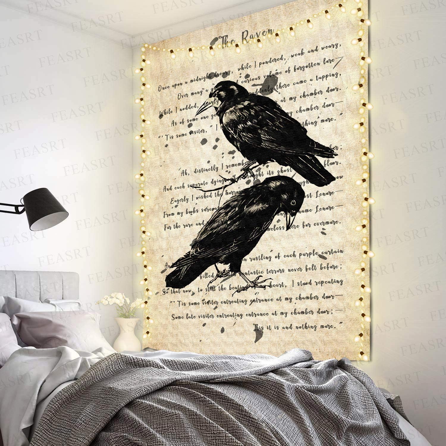 FEASRT The Raven Tapestry Nevermore Wall Decor Vintage Poe Gothic Rustic Home Room Raven Wall Hanging 40x60inch for Living Room Bedroom Dormitory Office GTQQAY1185