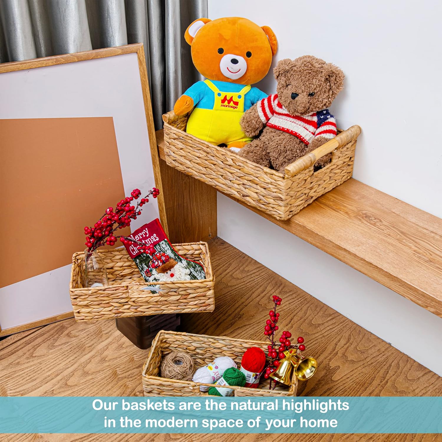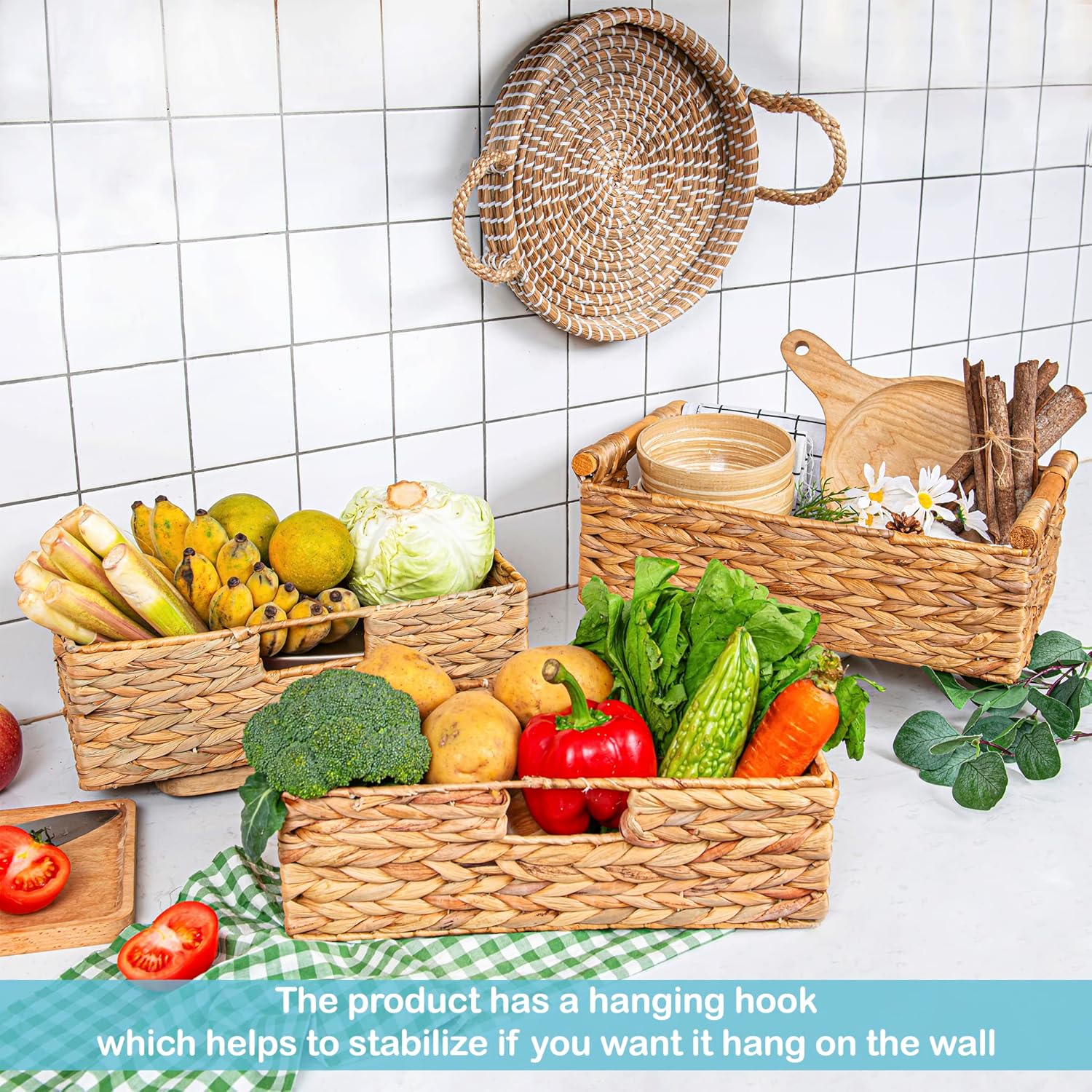 - โ Decorative Wicker Baskets: Natural water hyacinth basket is an easy and affordable way to change the style of your home. With their natural design, the wicker basket makes nice neutral backdrops and can brighten your day as well as impress your guests.