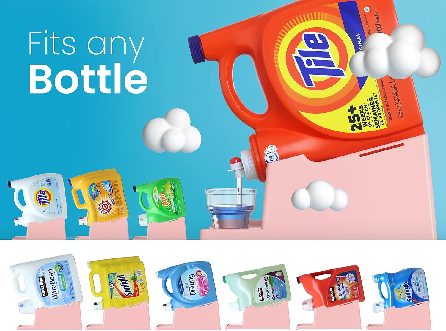 - Angled laundry detergent drip catcher, no need to tilt or lift the bottle. Downward slope makes soap pour out easily