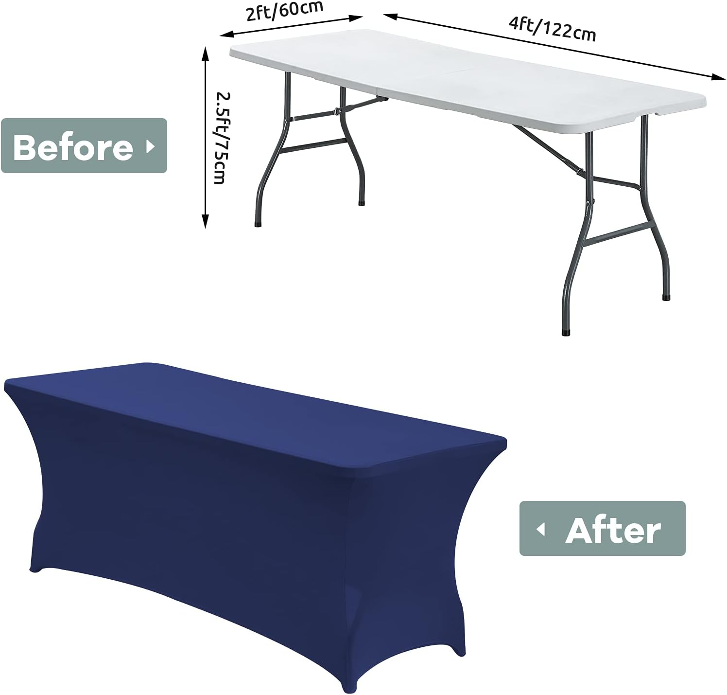 - [Easy To Set Up]: Our table cover is easy for you to set up,just wrap around your table, put 4 table legs into Elastic leg pockets,and ensuring that every part of the rectangular table is covered and spandex table cloth cover is displayed uniformly;It can be used for both indoors and outdoors