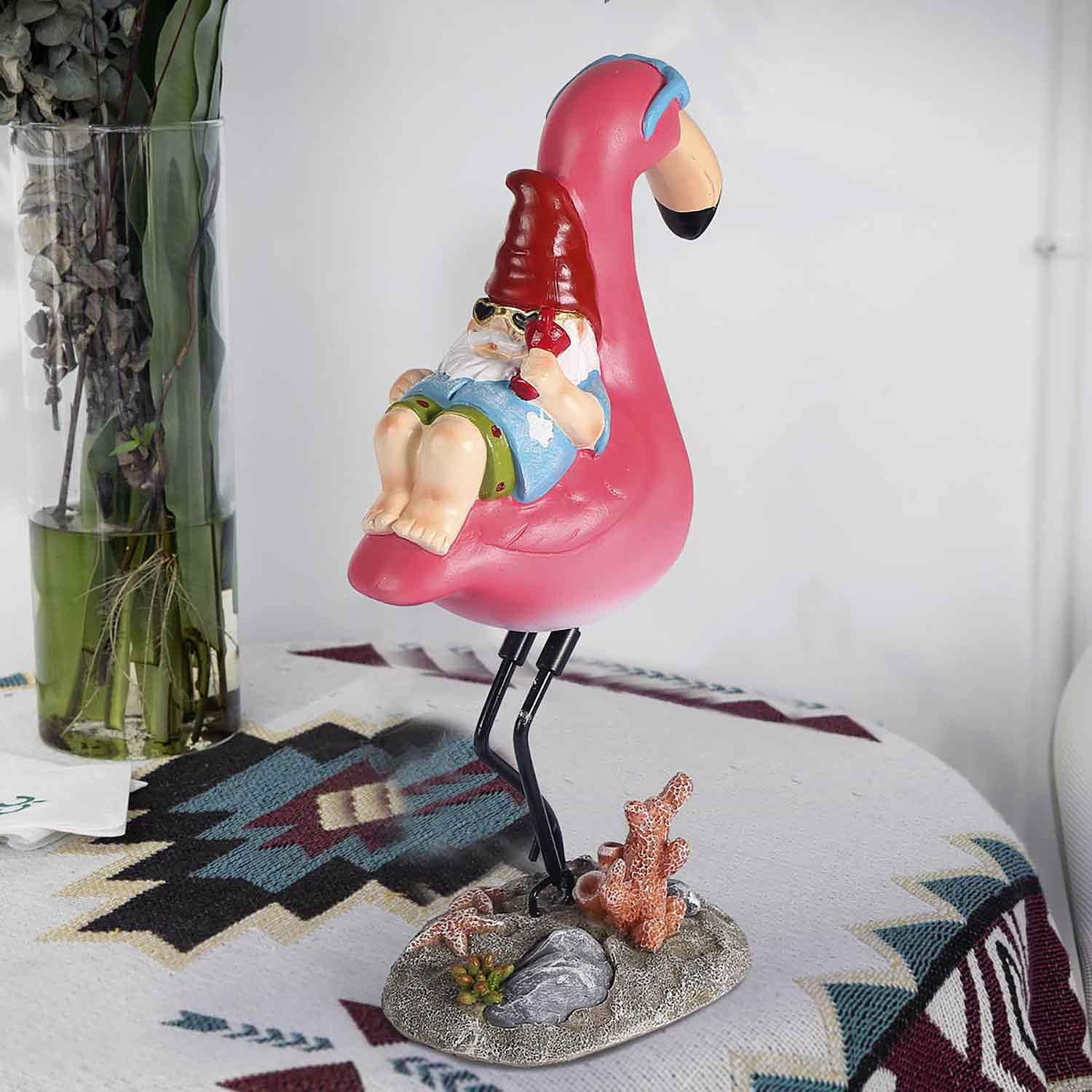 - Hand-Painted Charm for Endless Style Crafted with intricate hand-painted details, this playful gnome and flamingo duo bursts with vibrant colors and whimsical personality. From garden pathways and poolside lounges to desktops, balconies, or living room shelves, its eye-catching design adds a cheerful, tropical flair to any setting. Perfect for those who love to infuse spaces with humor and creativity!