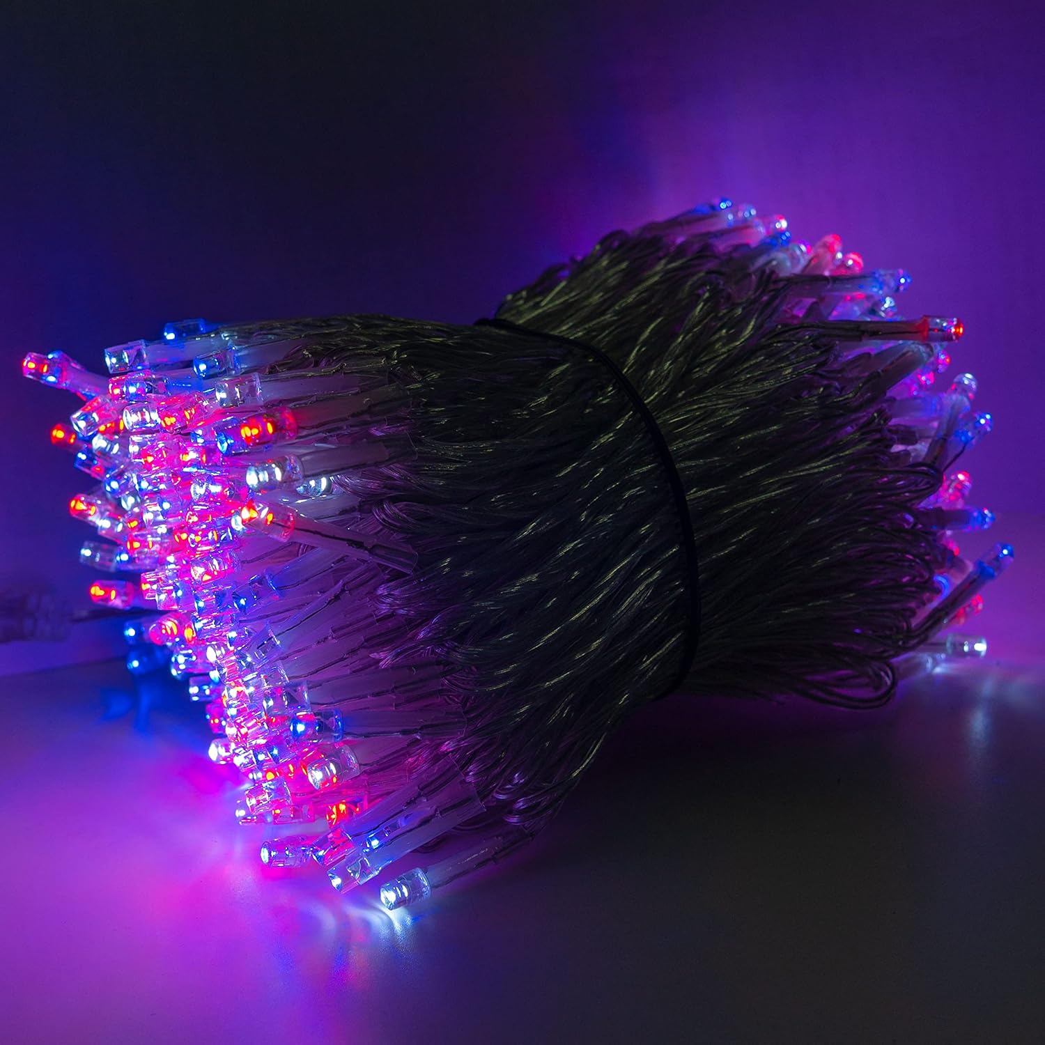 - Perfect Independence Day Decoration: The red white and blue color of Dazzle Bright 300 LED string lights can decorate your room, garden and courtyard well on Independence Day, very suitable for Memorial Day party scenes, holidays, performances, hotels, parks, restaurants.