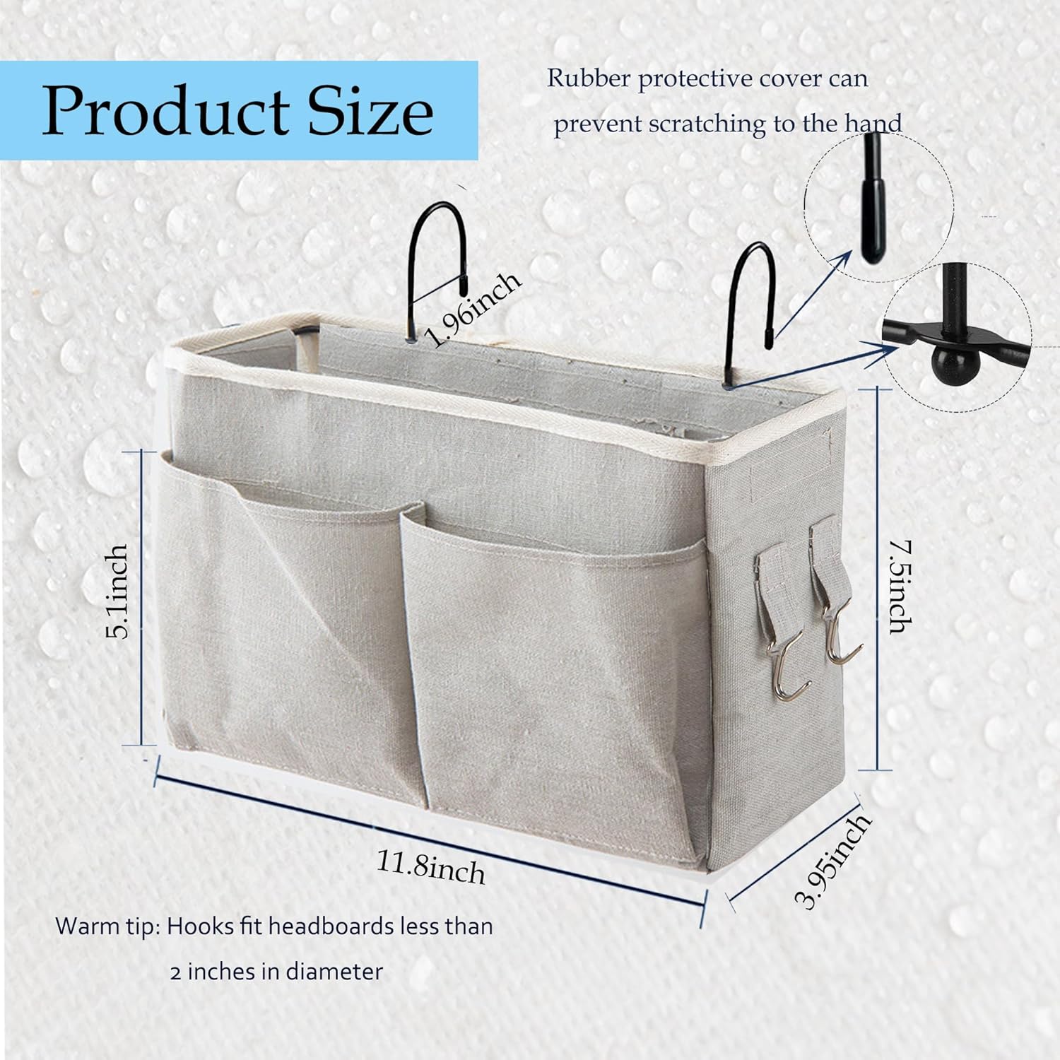 - 【 Premium Material 】The bedside caddy is made of Canvas and iron. make it strong and sturdy.The bedside storage caddy has 1 large pocket, 2 small pockets,1 small mesh pockets,and 2 hook up. You can storage your everything you want on bed, everything is well organized and within reach.