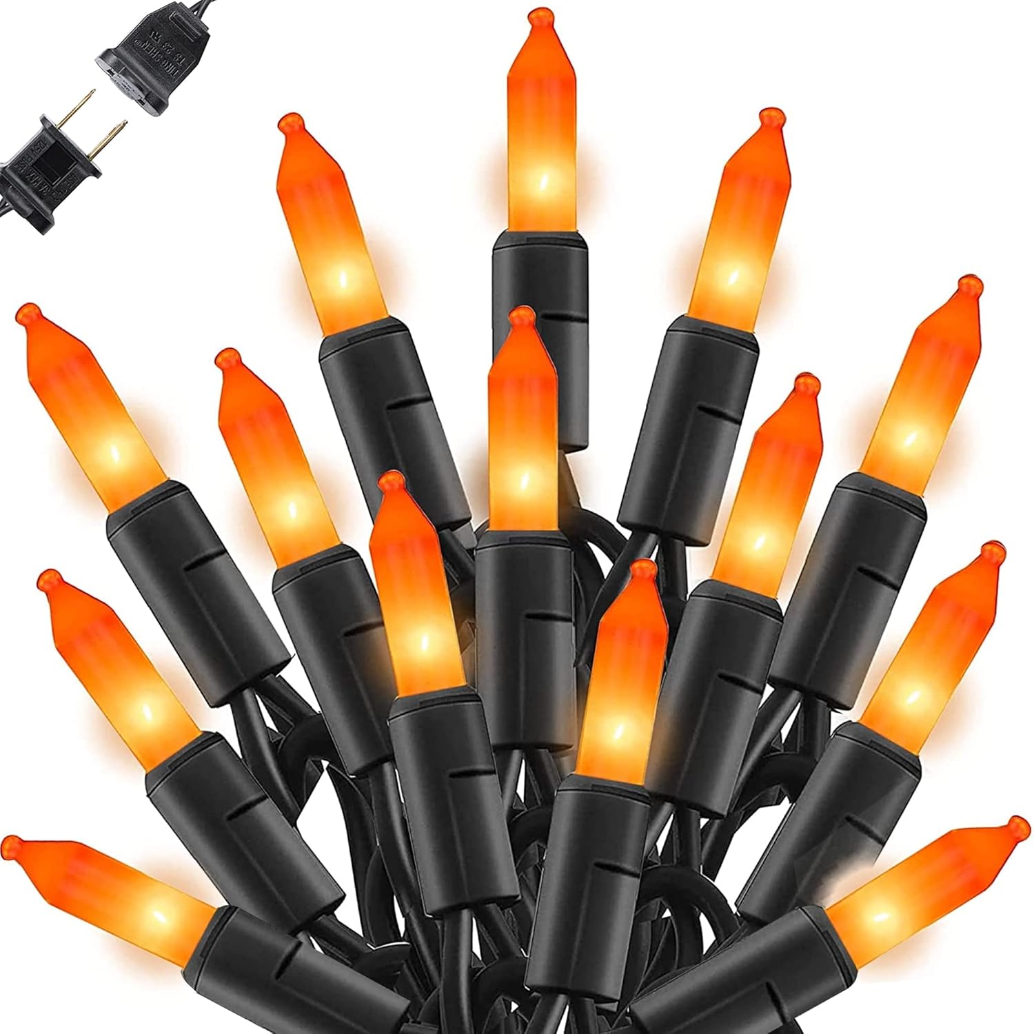 Dazzle Bright Orange Halloween Mini Lights, 20FT 100 Count Waterproof Incandescent Lights Plug in, Connectable Halloween Decorations for Indoor Outdoor Party Yard