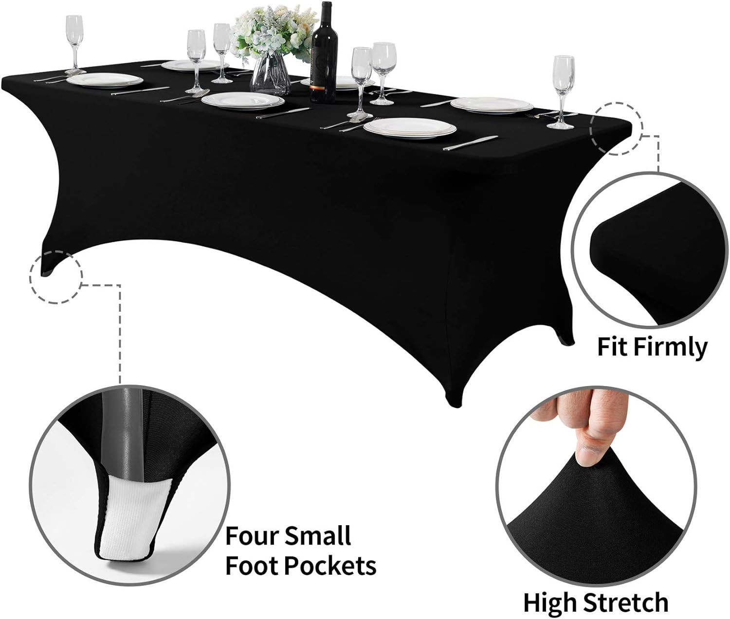 2Pack Spandex Table Cover for 8FT or 4ft or 6ft Table Universal Fitted Stretch Tablecloth for Party, Banquet, Wedding and Events-Black