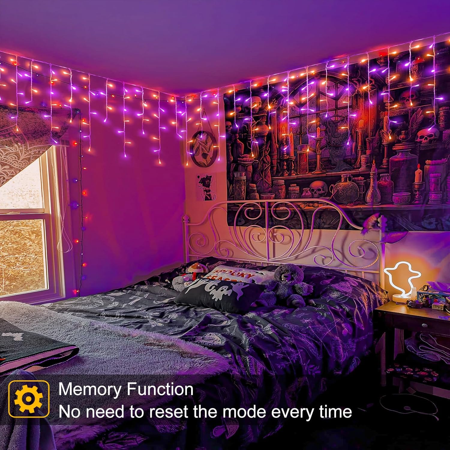 - Waterproof: The outdoor Halloween decorations is perfect for outdoor using, including heavy rain and snow. Sealed LED beads, thick gauge wire and coating all are IP44 waterproof, they make the outdoor icicle lights durable and worked great through the season. But please kindly note that the plug is not waterproof, please do some protection or keep them away from water.