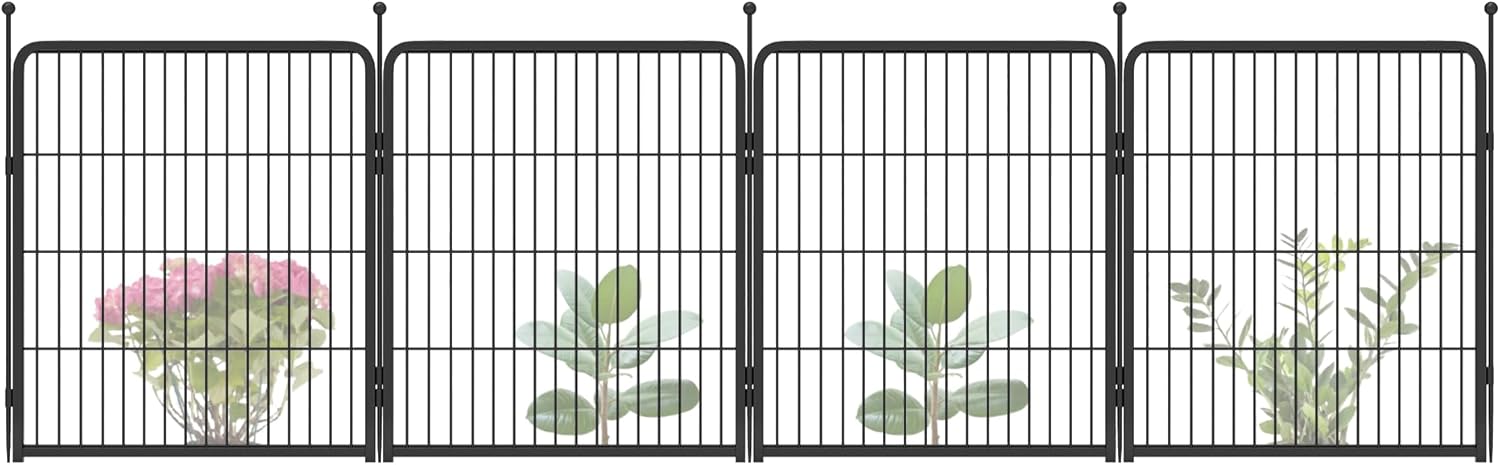 FXW Garden Fence 32in(H) x 9.0ft(L), 4 Panels Decorative Dog Fence Outdoor for The Yard – Heavy Duty Metal Animal Barrier for Dog and Rabbit, Easy Setup, Black