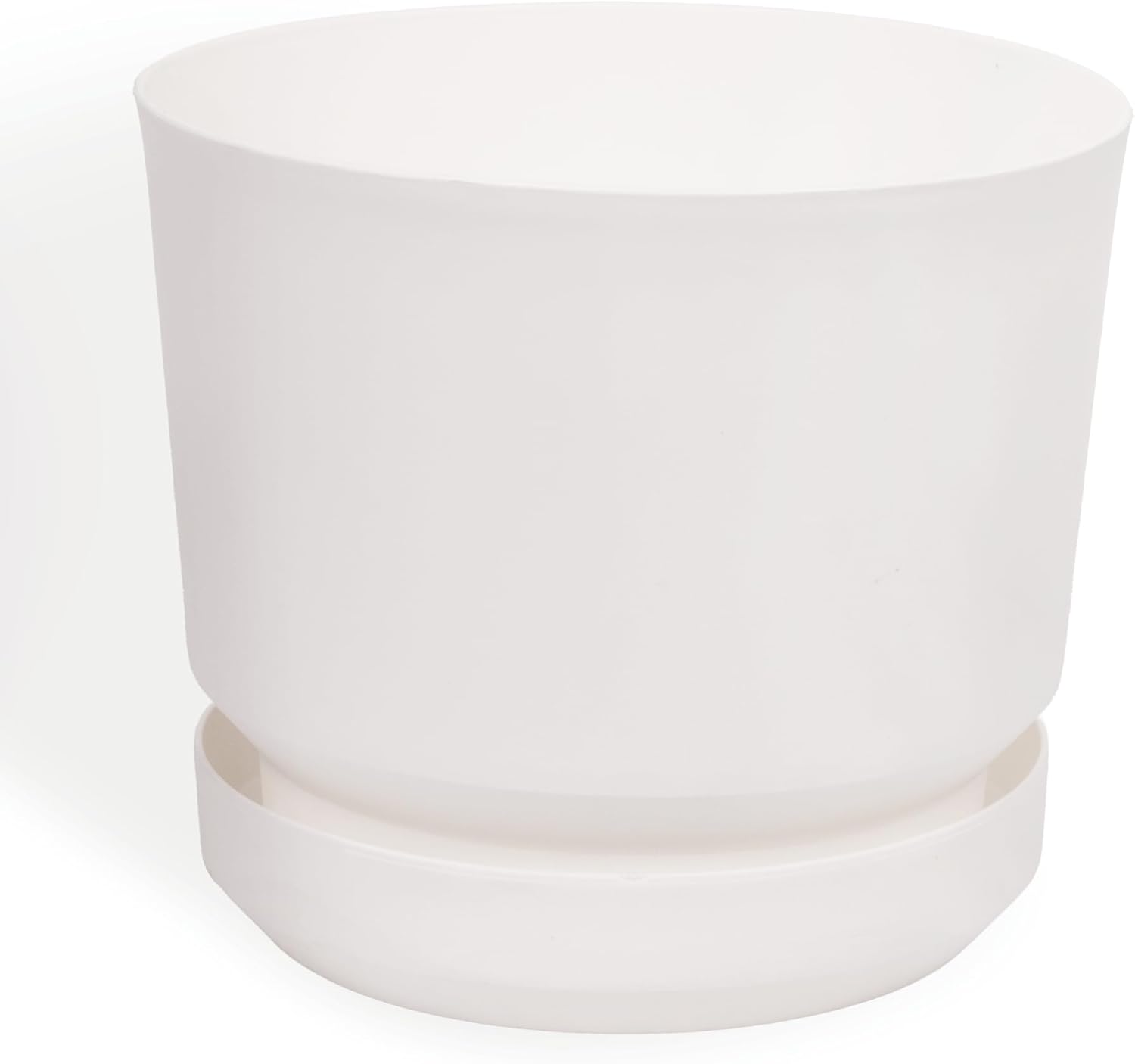 Elly Décor 8 inch Plastic Cylinder Planter Pot with Self-Watering Saucer and Drainage Hole,Lightweight & Extremely Durable, 8"x 8", White