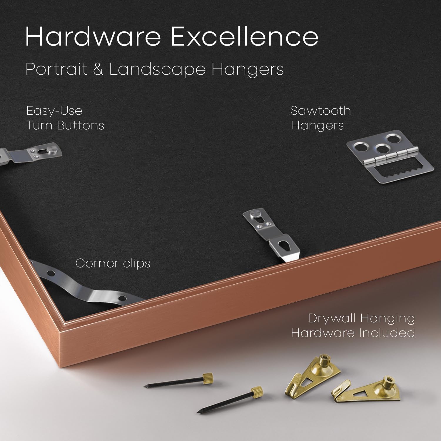 Homeforia 11x14 Picture Frame Rose Gold, High End Metal 11x14 Wall Hanging Frame with Mat 8x10, 11 x 14 Poster Frame Matted to 8 x 10 inch Photo, 11by14 Thin Frames, Tempered Glass, Wall Kit, Set of 1