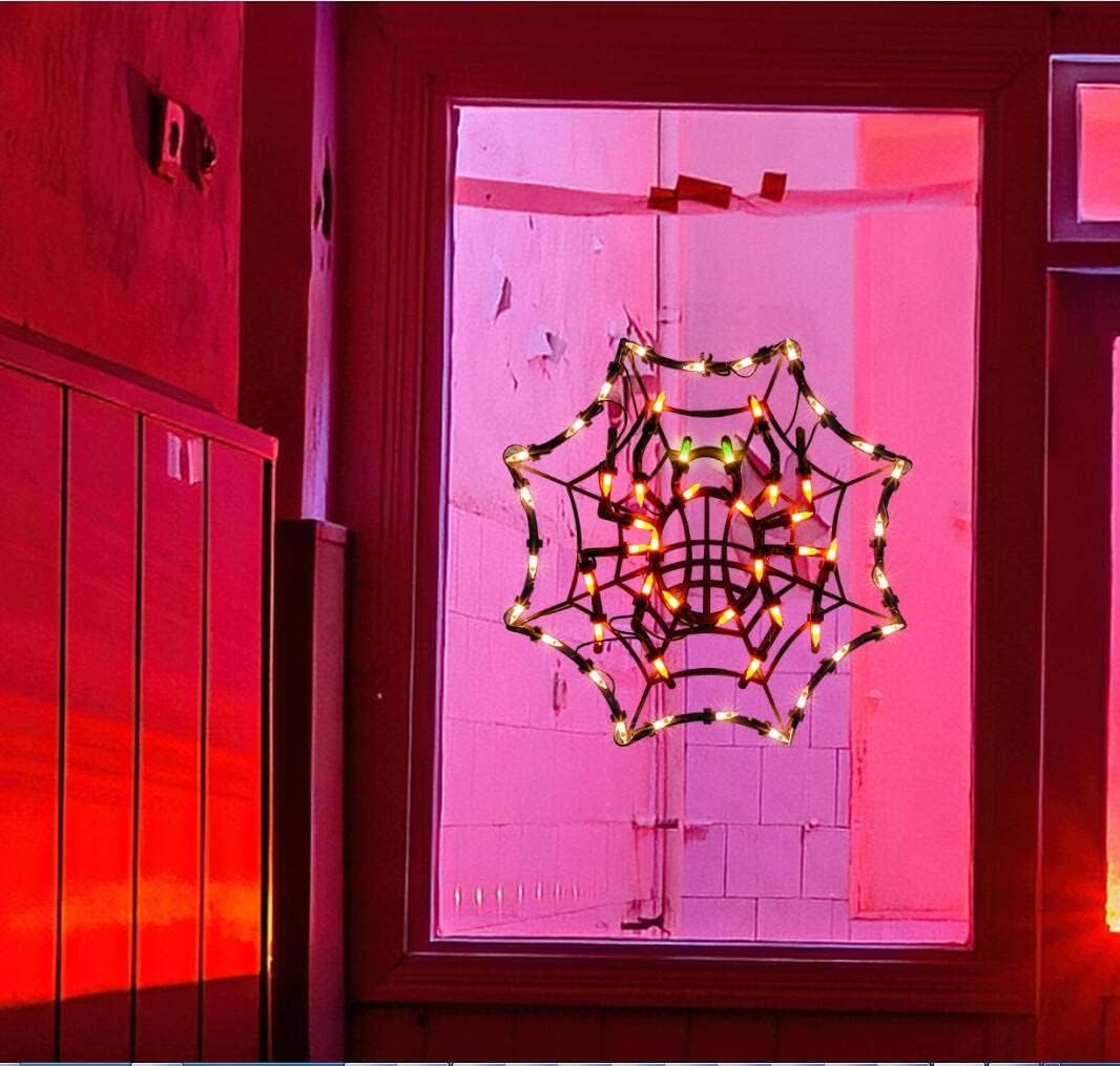 12.8" Lighted Cobweb Halloween Window Silhouette Decoration,Halloween Lighted Window Decoration,Hanging Light Up Holiday Ornament( Cobweb Light)
