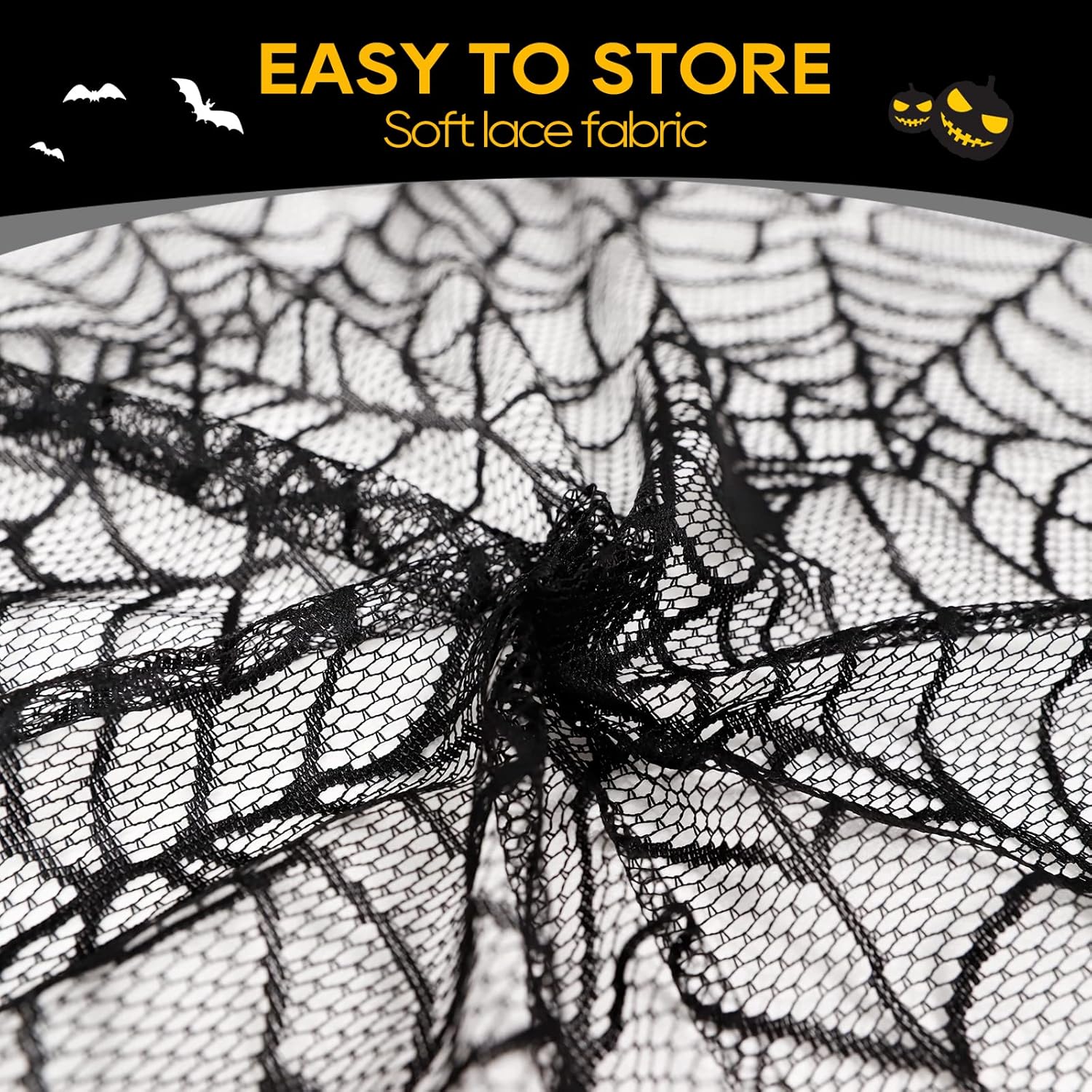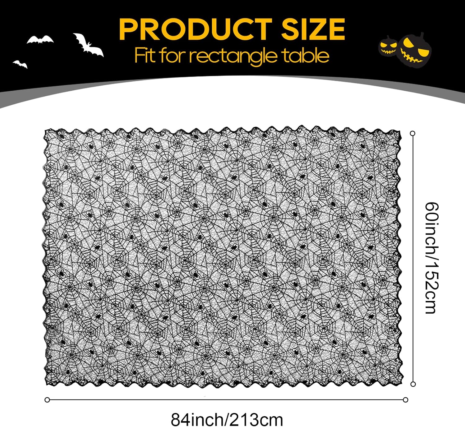 eZAKKA Halloween Table Cloth, Spider Webs Tablecloths Black Tablecloth Lace Fabric Table Cloths Spooky Cover for Rectangle Tables for Parties Gothic Halloween Home Decorations, 60x84 Inch