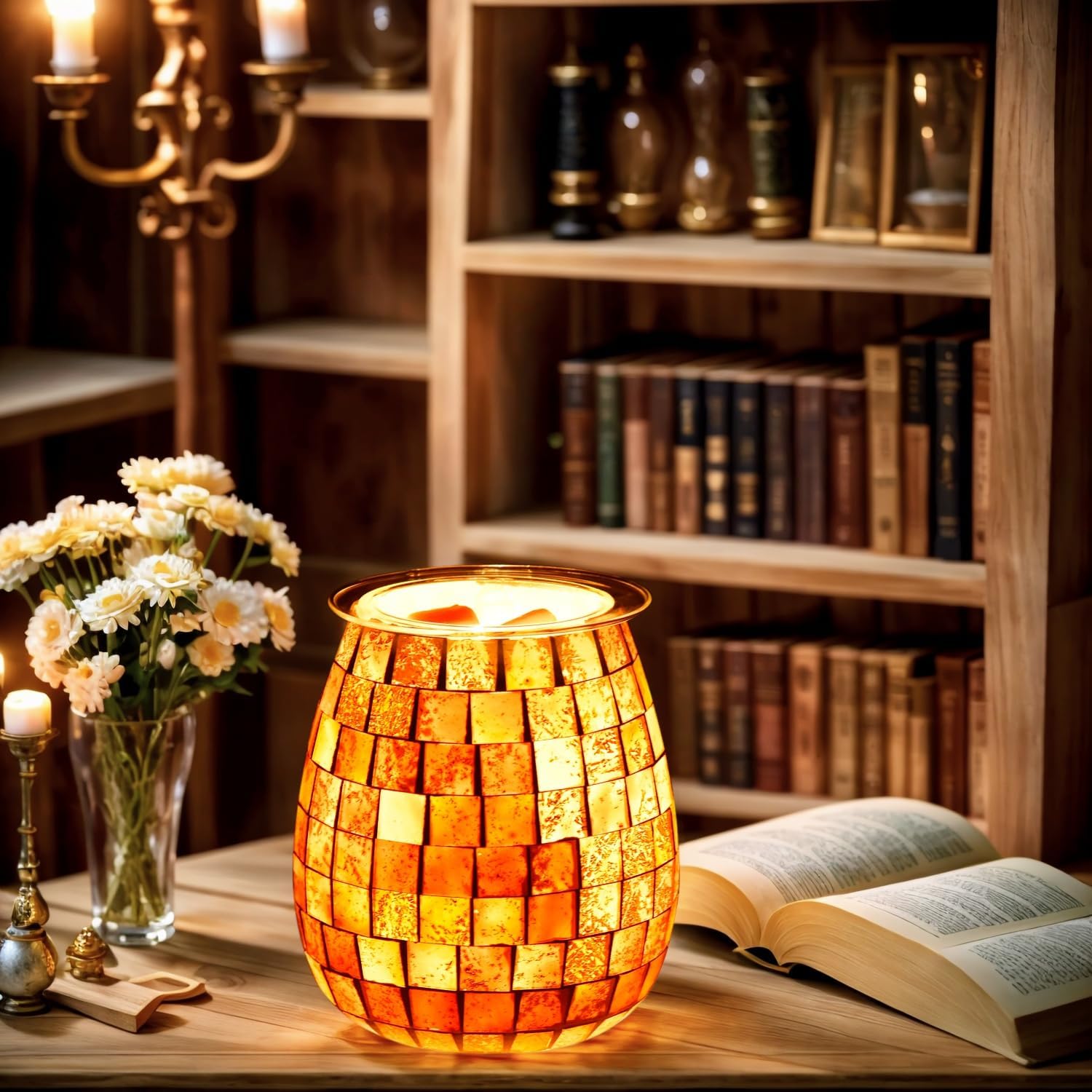 Dicimi Glass Wax melt Heater, Mosaic Electric Fuel Burner, Candle Wax melt Romantic Fragrance Heater Essential Oil Burner, Suitable for Gifts, Home Decoration(Platinum Cube)