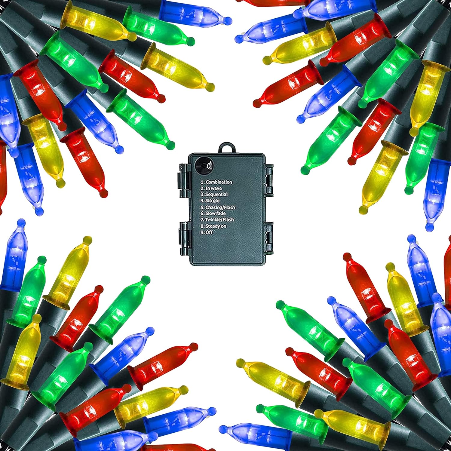 - 8 Lighting Modes: Dazzle Bright mini string lights has 8 different lighting methods, including combination, in wave, sequential, slo glo, chasing/flash, slow fade, twinkle/flash, steady on. Press the button on the battery box to select the lighting mode you like.
