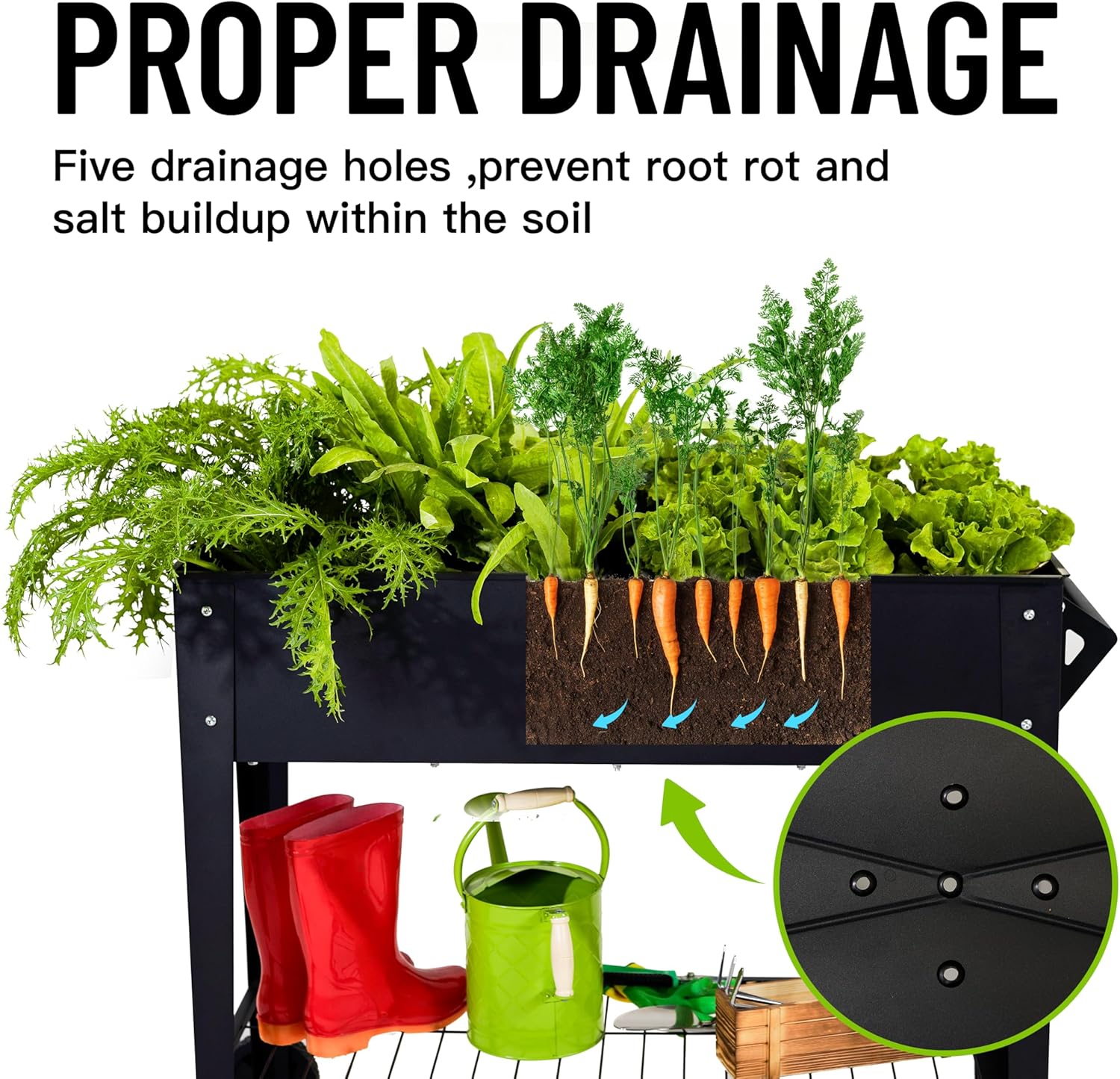 - 【Superior Drainage & Airflow】 Dual-layer drainage system (5 holes + 2 cross lines) prevents waterlogging 2x faster than single-hole beds. Keep roots healthy in heavy rain!