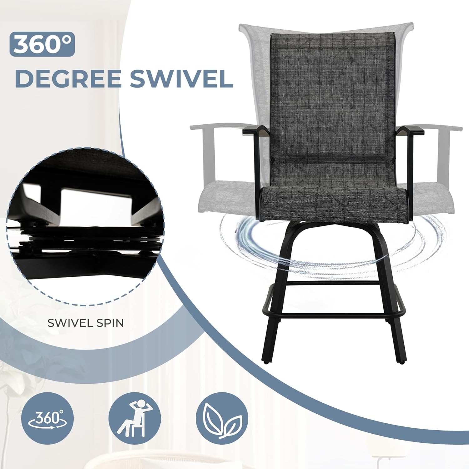 - FUNCTIONAL FEATURES: The balcony bar chair with 360ยฐ free rotation design, combined with the reinforced design of double support ribs at the bottom, can enjoy the outdoor scenery 360ยฐ freely