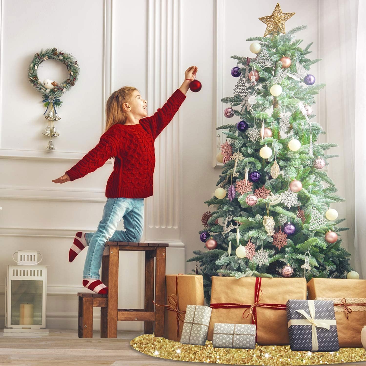 - ❄️【Size Detail - Sequins Christmas Tree Skirt】You will receive a 36 inches diameter gold glitter sequins tree skirt, fits under 3 foot tall trees. You can put some gifts, Christmas boxes, Christmas ball on the xmas tree cover mat. The sparkle velour Christmas tree skirts is perfect for decorating your home and become part of your holiday tradition.