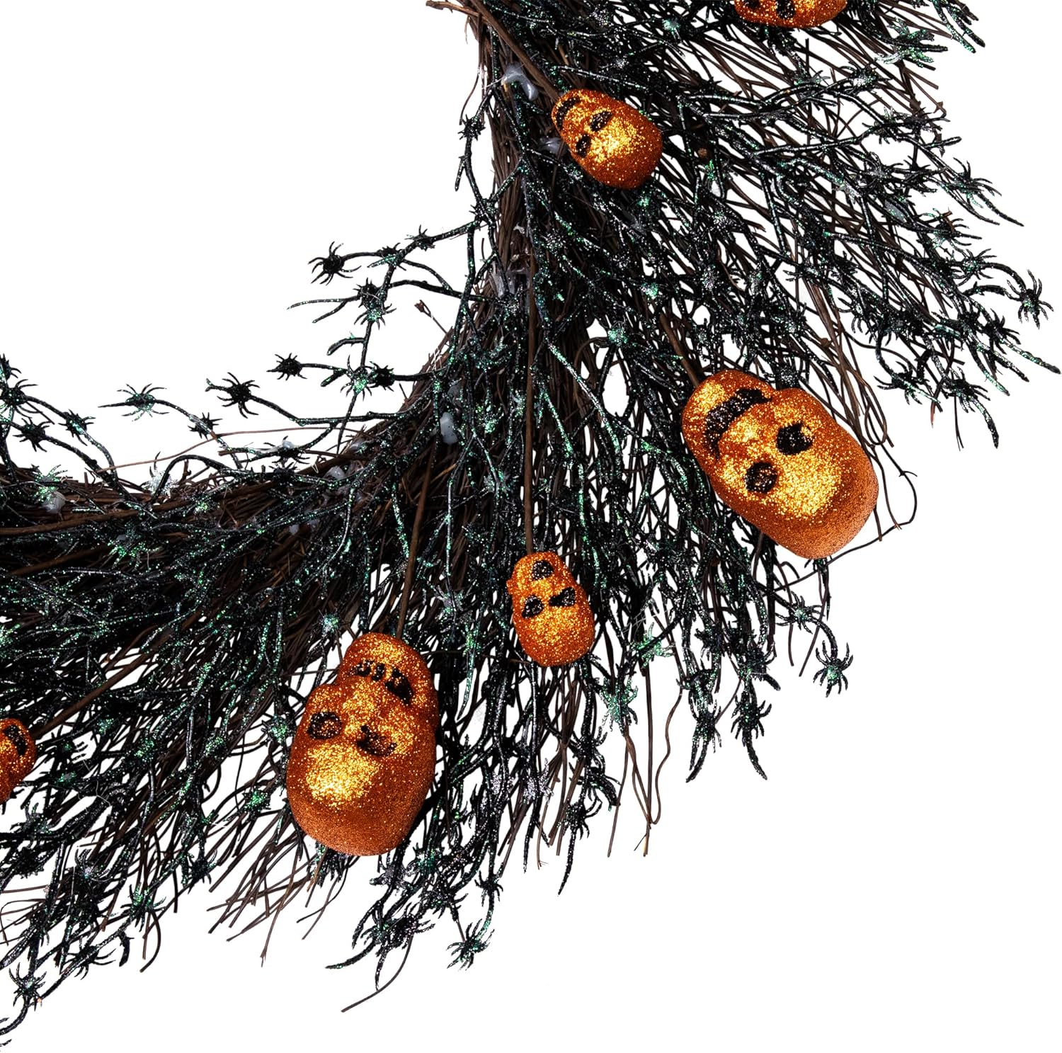 Glittered Skulls and Spiders Halloween Twig Wreath - 22" - Unlit