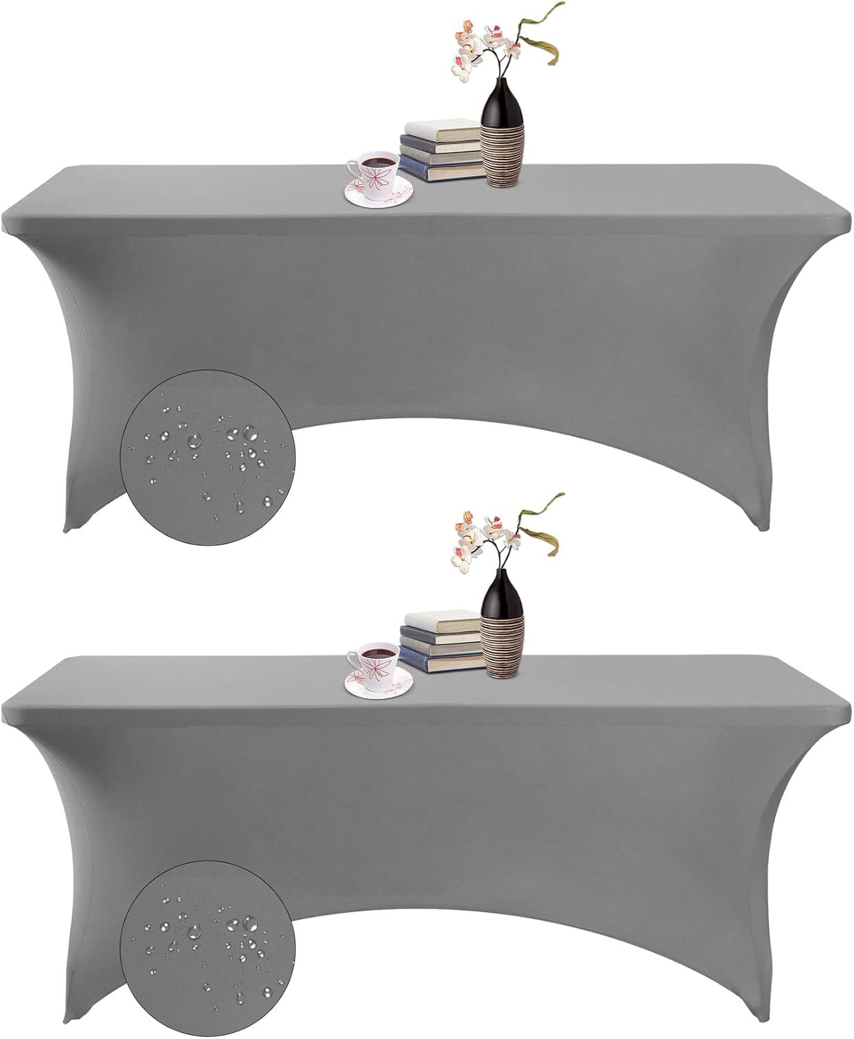 2Pack Spandex Waterproof Table Covers 6ft,Spandex 6ft Waterproof Table Cover for Party,Wedding, Banquet, and Events(Gary)