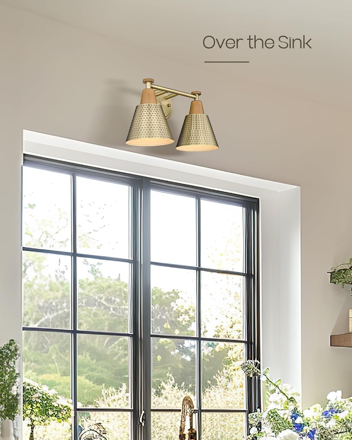 - 【Modern & Industrial Design】The bathroom light is made of sturdy metal in Matte antique brass finish which no need to worry about getting oxidation and color fading. Additionally, the hammered shades emit aesthetic and ample glow to create a beautiful lighting atmosphere outside your home or inside your room.
