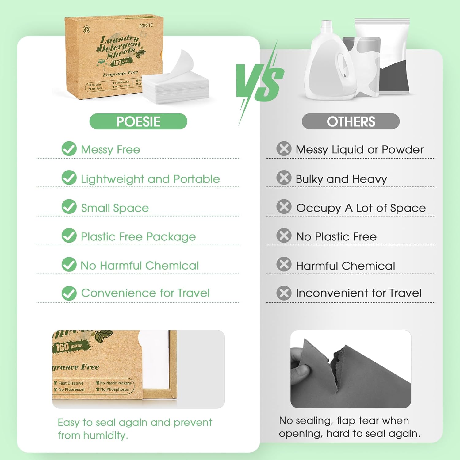 - Handy and Save space - Say goodbye to the heavy plastic pod packaging, the entire laundry package is very easy to carry, and occupies less space than plastic jugs, you can leave more room for other tools