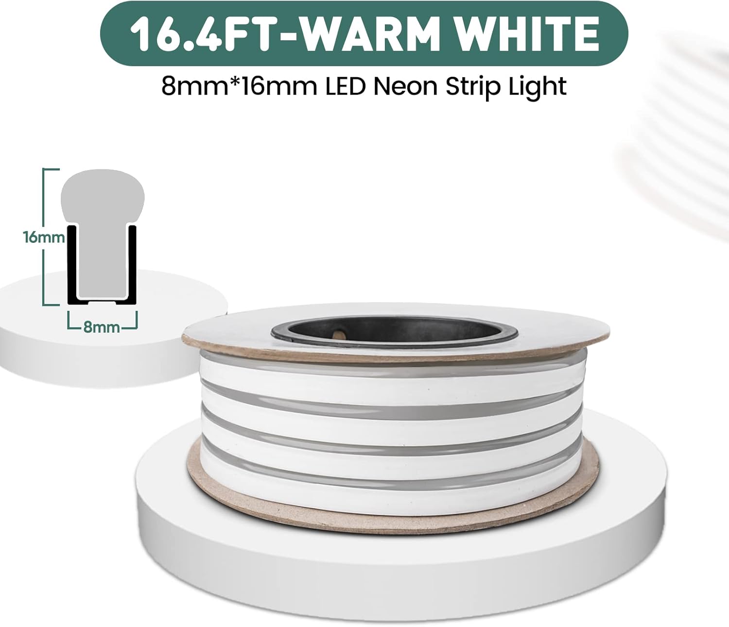 GZBtech Flexible LED Neon Rope Lights 16.4FT,AC 110-120V Waterproof Strip Light, 120LEDs/M Cuttable Connectable Neon Lighting for Indoor Outdoor Home Decor/Commercial Building Use-Warm White 5M