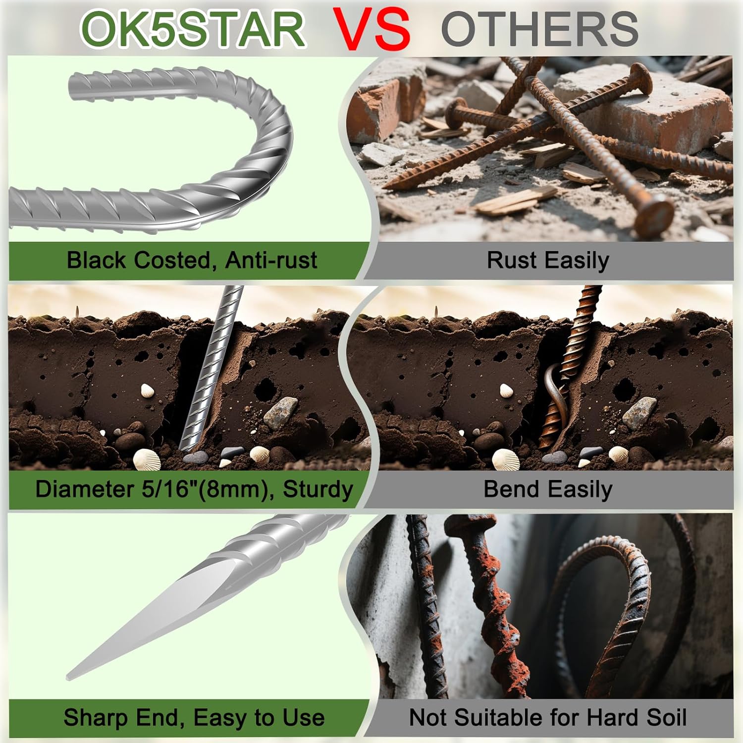 - Anti-Rust: Hot-dip galvanized ground stakes heavy duty are rust-proof, they withstand sun, rain, wind, and snow without corroding.