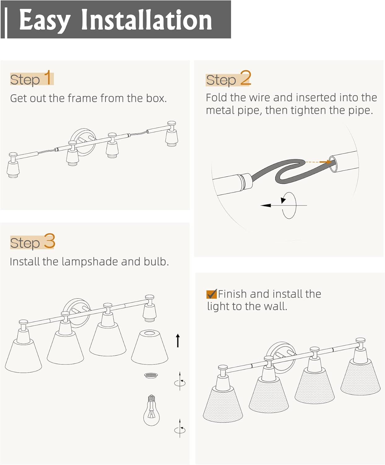 - 【Bulb Requirements】Support any E26 base bulbs ( Max 60W/each, bulbs are not included). This wall lamp is also designed to be dimmable when used with a dimmable bulb and compatible dimmer switch.