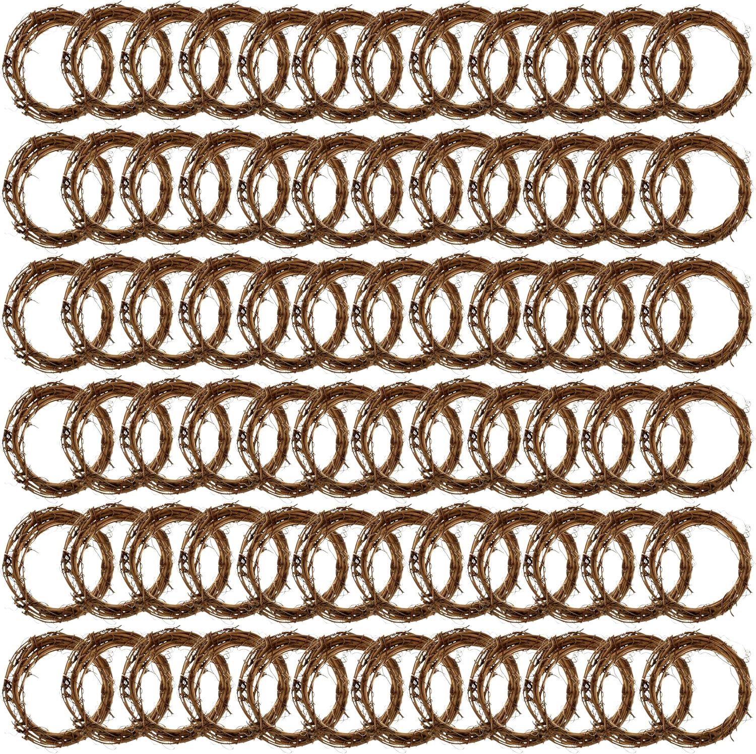 - Natural brown. 3” diameter. Grapevine. 72 wreaths. Natural product; color and size may vary and leaves may be present.